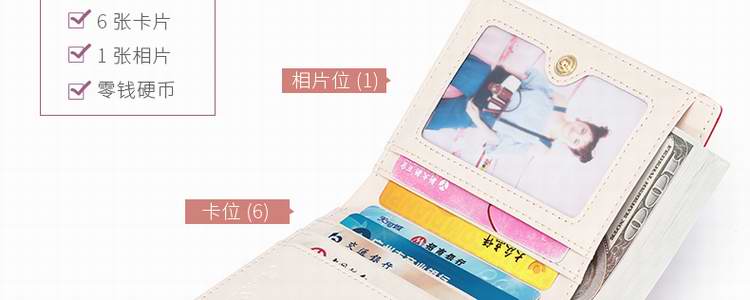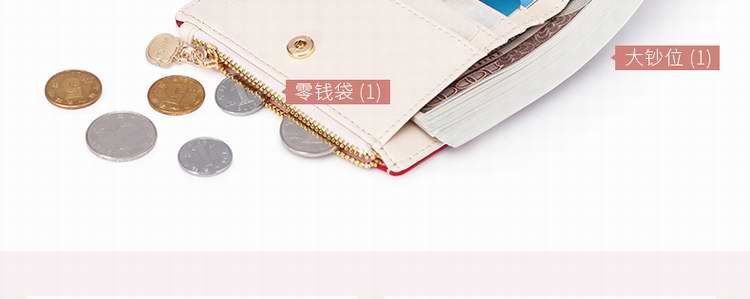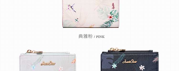 欧时纳(JUST STAR) 新款小ck风时尚短款女士折叠钱夹 典雅粉647