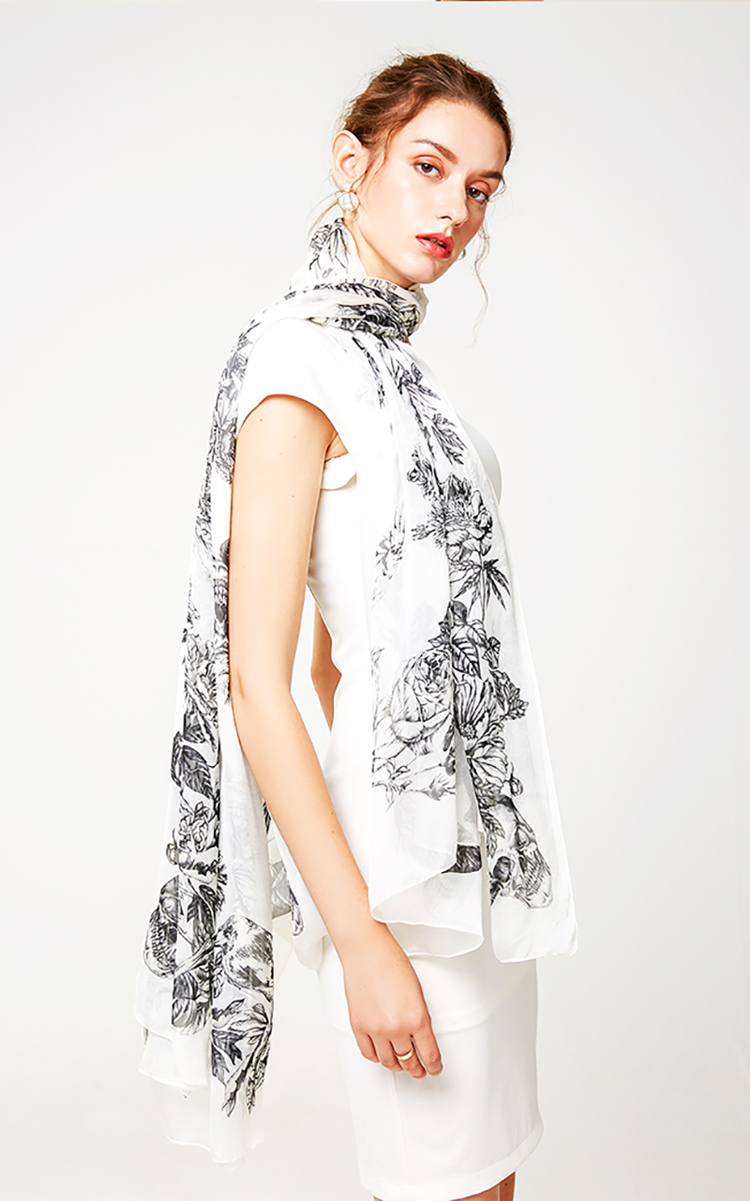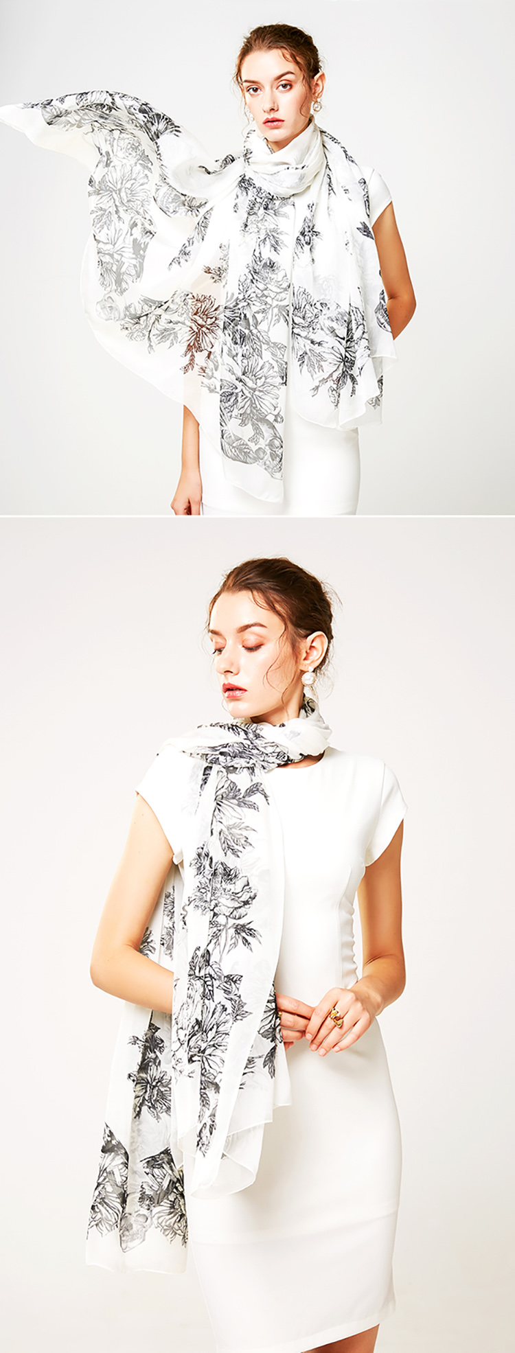 沐泠 咫尺 100%天然桑蚕丝喷绘长巾 ML-90850830