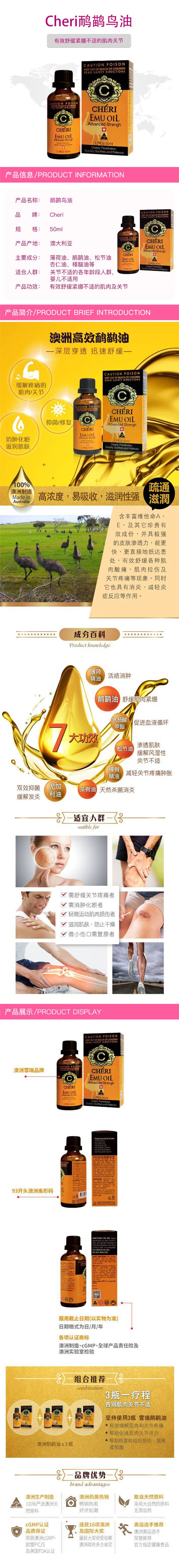 澳洲Cheri雪瑞鸸鹋鸟油鸵鸟油缓解肌肉关节酸痛万能油50ml