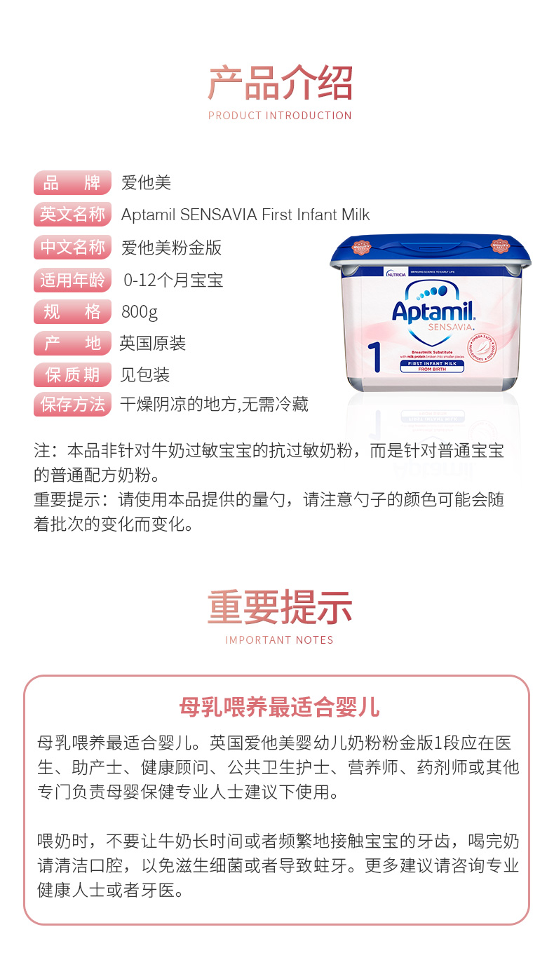 您所在的位置:首页 > 母婴用品  > 奶粉 > 婴幼奶粉  > 【英国直邮】英国爱他美Sensavia粉金版1段800g