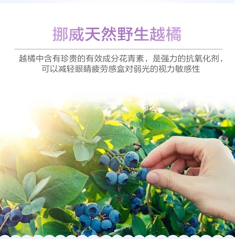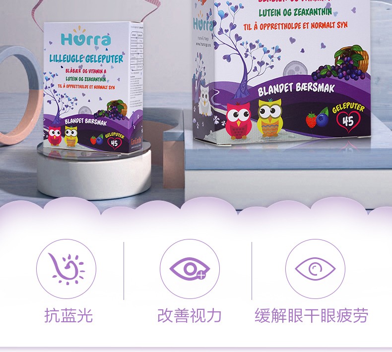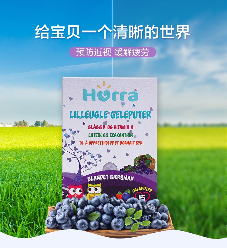 挪威Hurra叶黄素儿童蓝莓护眼片缓解视力疲劳眼睛保健品蓝莓果冻45粒