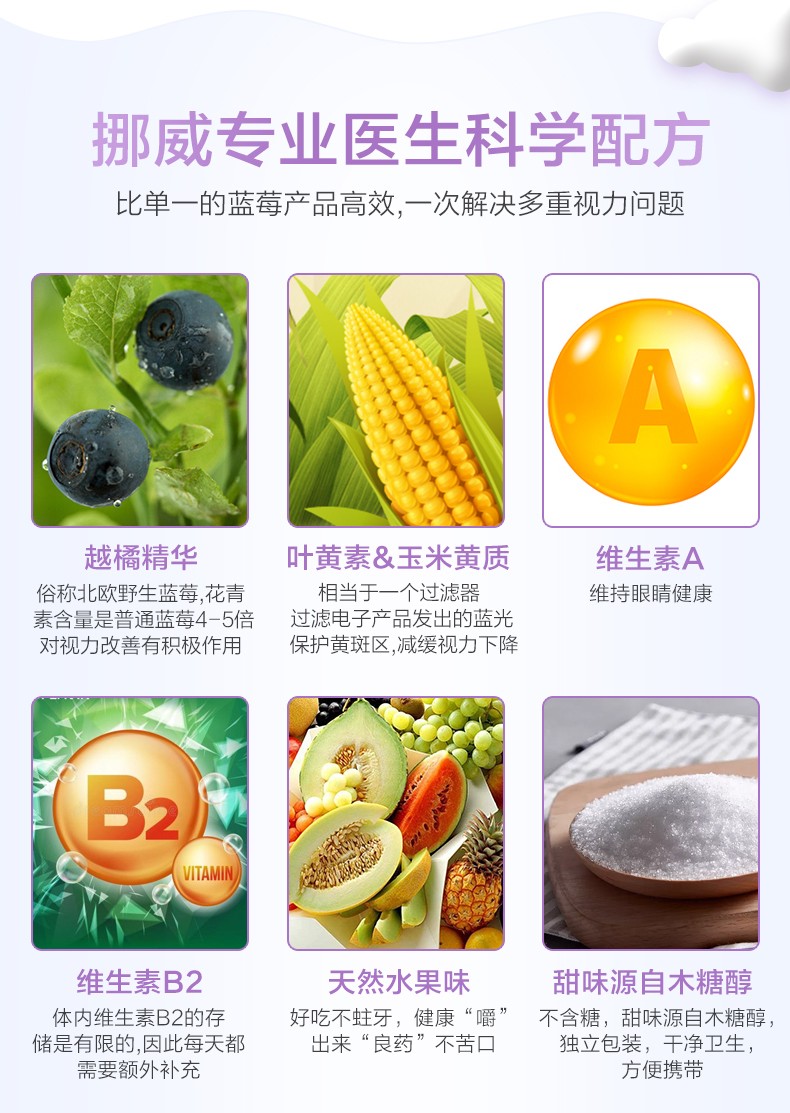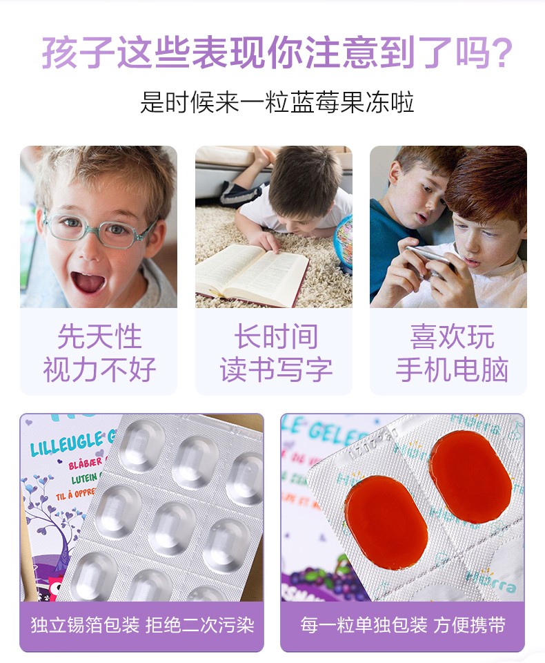 您所在的位置:首页 > 营养保健  > 营养成分 > 叶黄素  > 挪威Hurra叶黄素儿童蓝莓护眼片缓解视力疲劳眼睛保健品蓝莓果冻45粒
