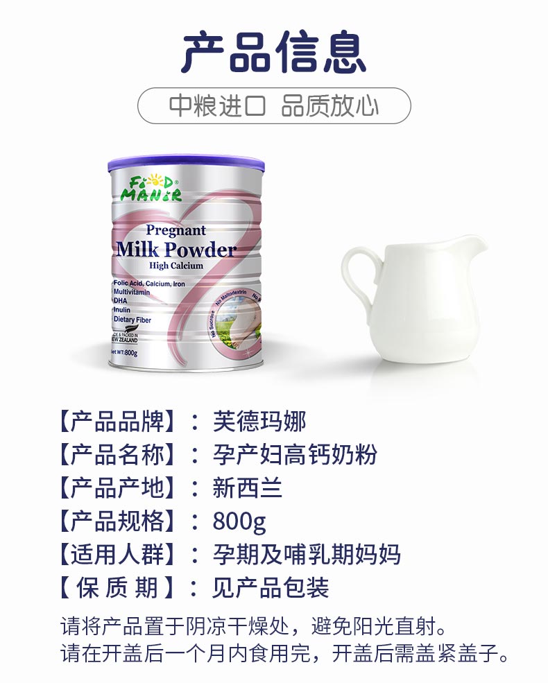 芙德玛娜(FOODMANOR) 孕产妇配方 高钙奶粉(调制乳粉) 新西兰进口800g