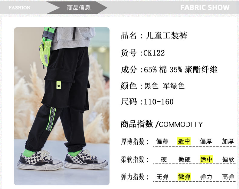 泽佰熊儿童工装休闲裤男款CK122尺码160军绿色