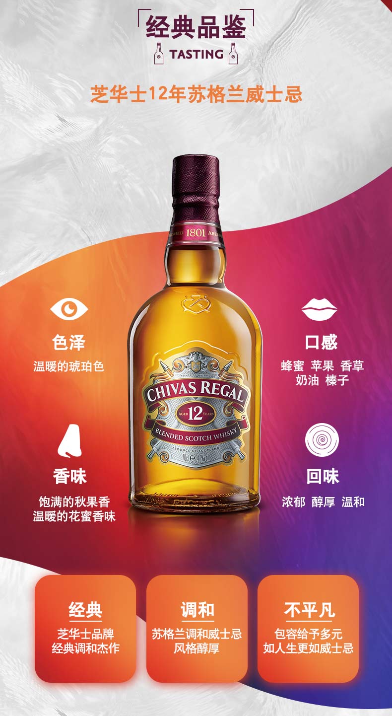 芝华士12年苏格兰威士忌 苏格兰原瓶进口 700ml