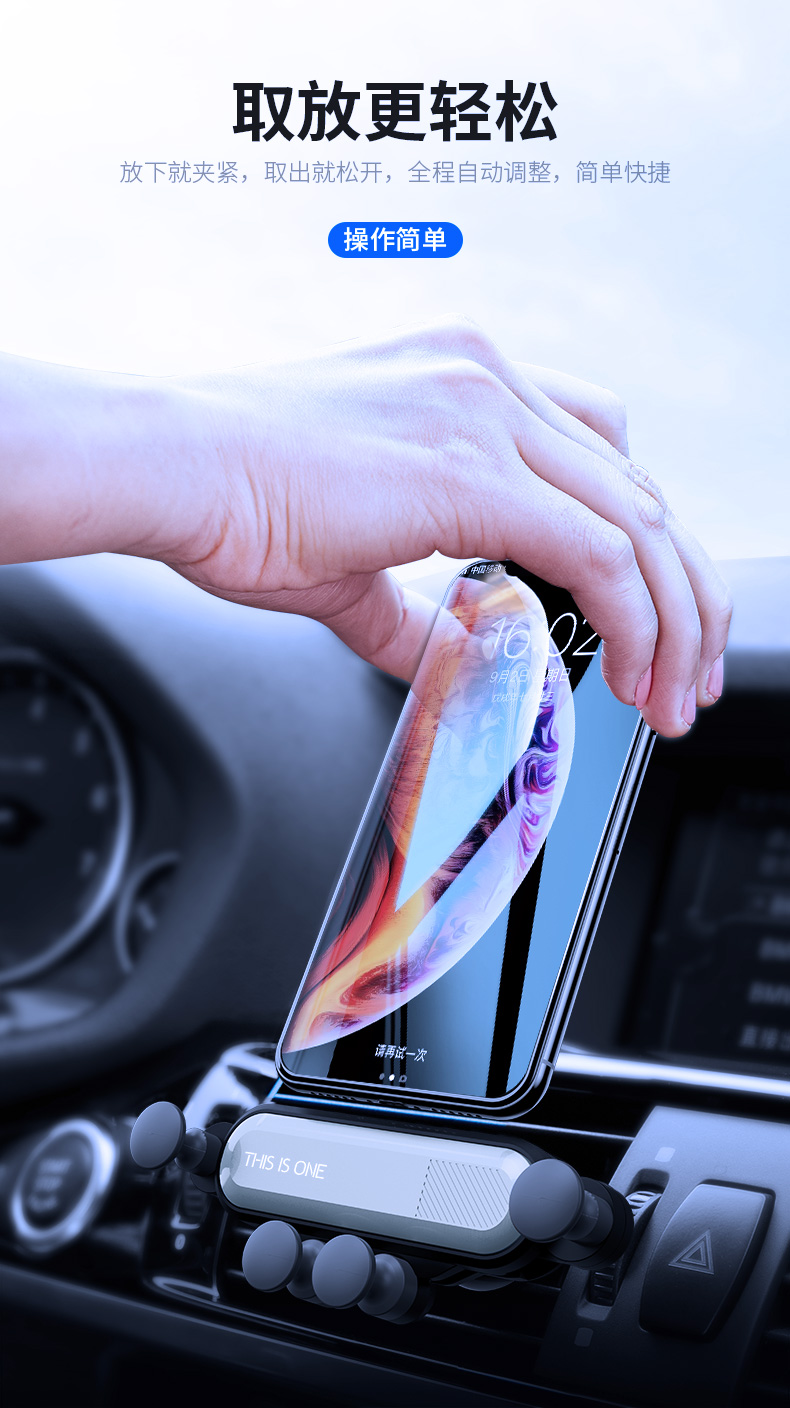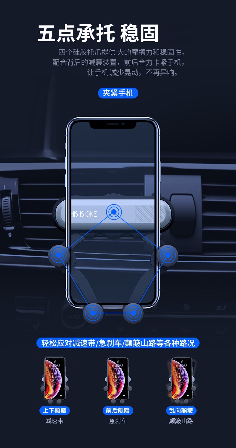 永田禾品 车载手机架 重力支架卡扣式出风口 宝石青