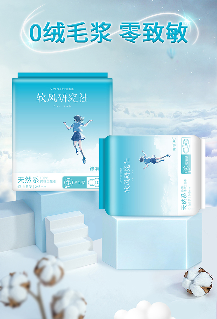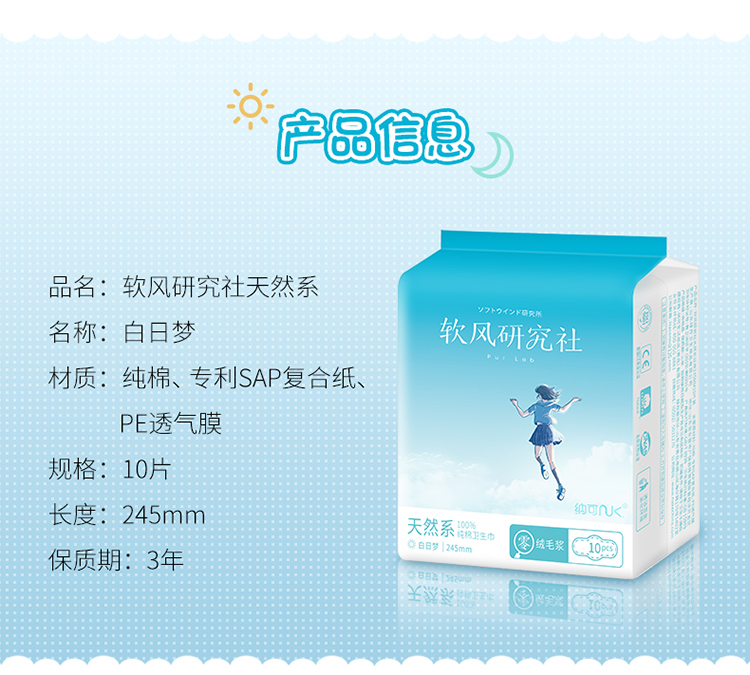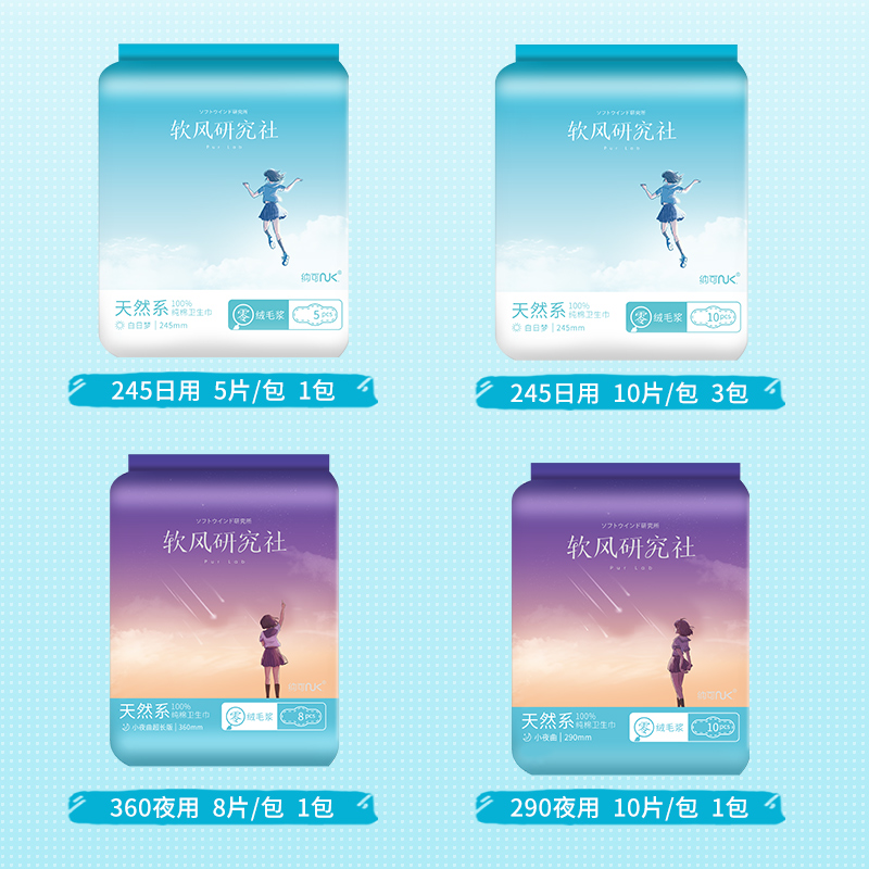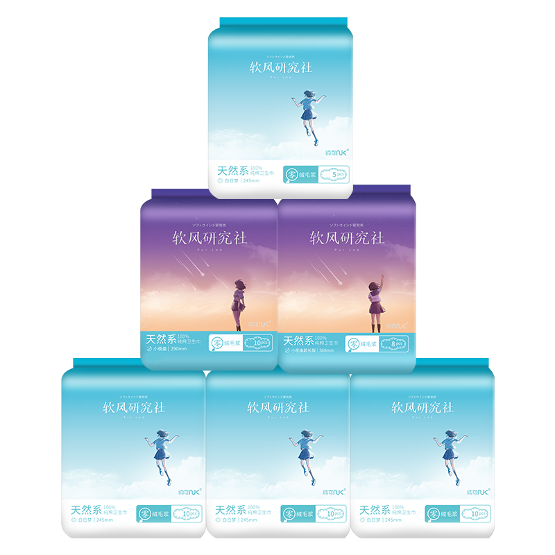 纳可软风研究天然系社卫生巾日夜组合 姨妈巾女品牌正品无荧光剂 6包实惠装 日用4包+夜用2包