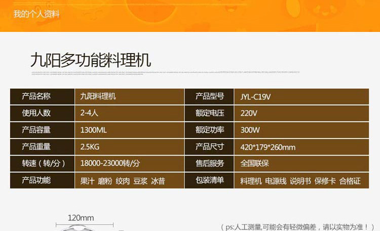 【授权商品】九阳(Joyoung) JYL-C19V 料理机 微精磨粉碎 营养充分释放 1.3L容量 一次满足全家需求 白