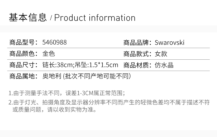 Swarovski 施华洛世奇 女士金色项链 5460988