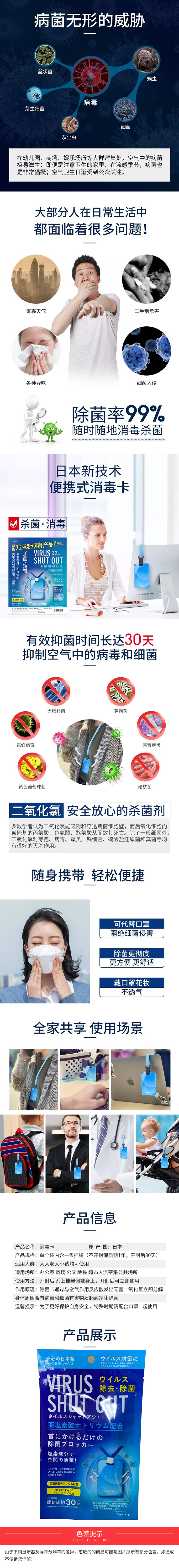 日本TOAMIT防护卡VIRUS SHUT OUT便携消毒卡除菌卡 开封后约30日
