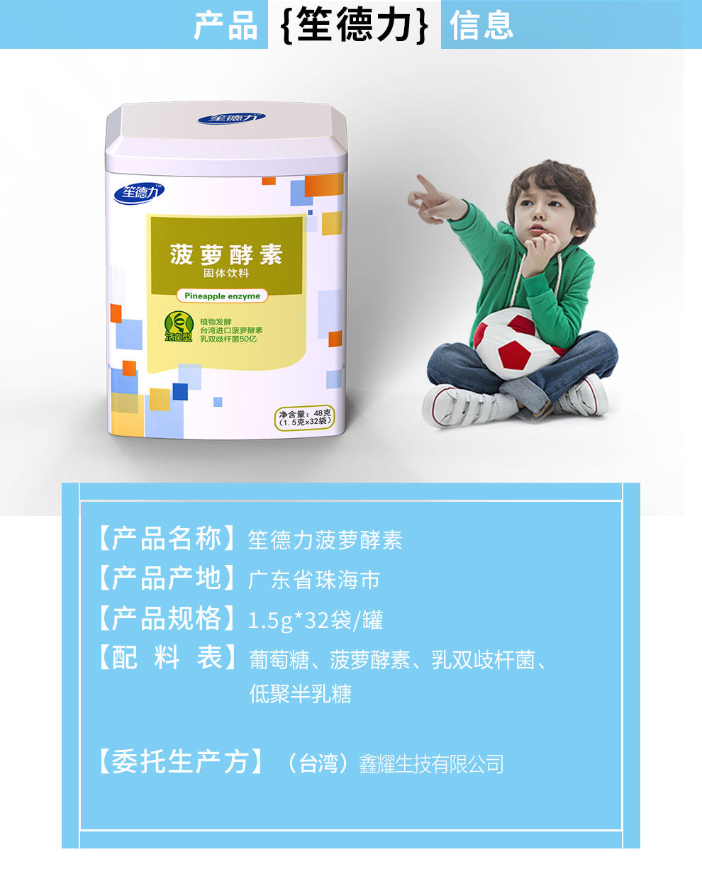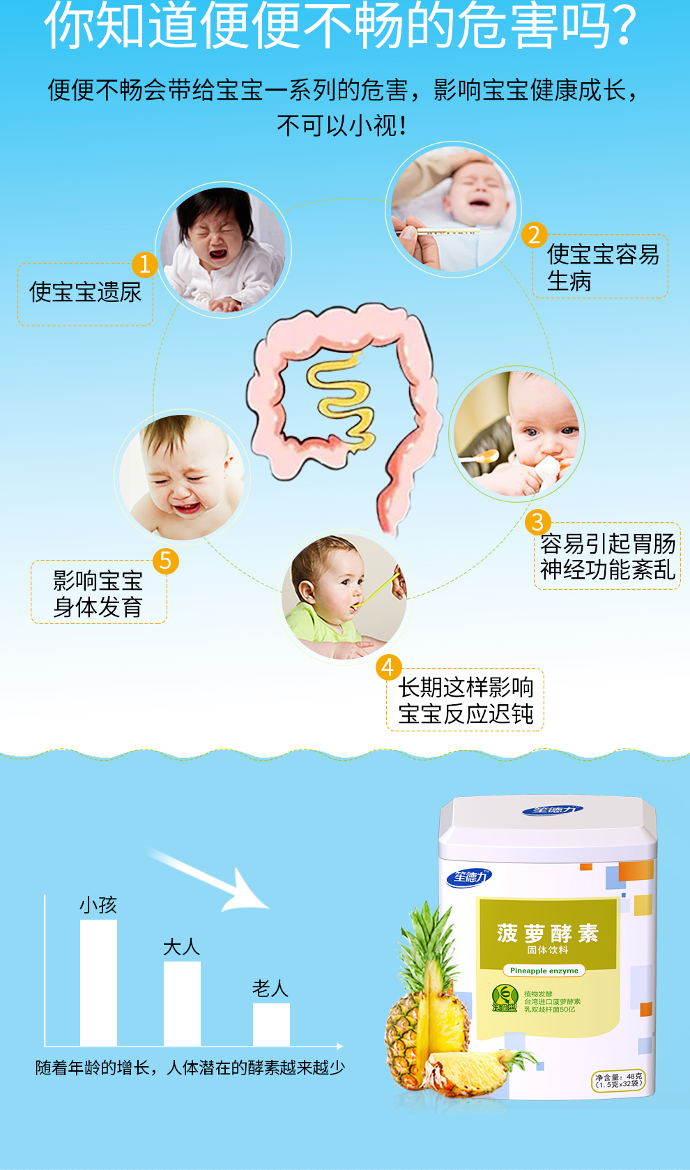 台湾进口原料笙德力菠萝酵素益生菌宝宝儿童益生菌 帮助排便 48g