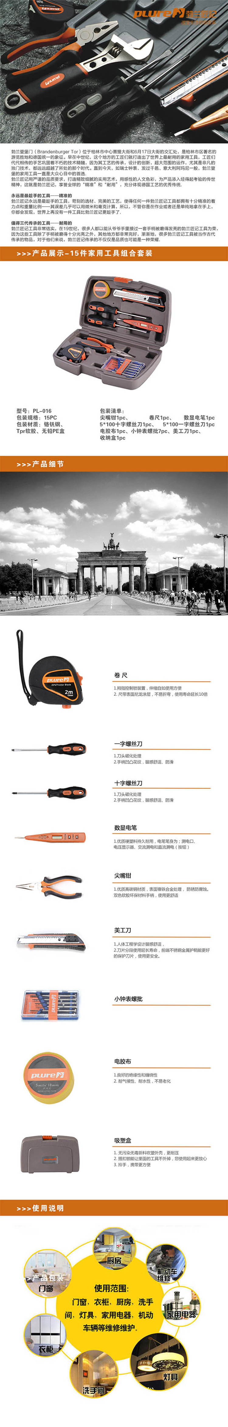 勃兰匠记plure 15件家用工具组合套装PL-016