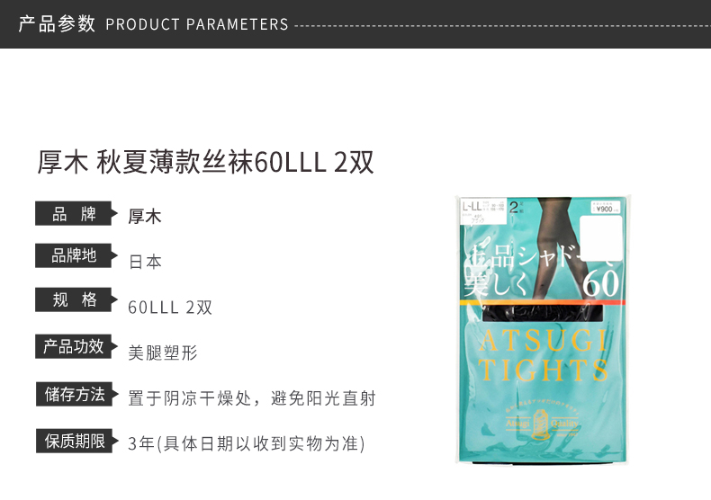 日本厚木 秋夏薄款丝袜60LLL 2双