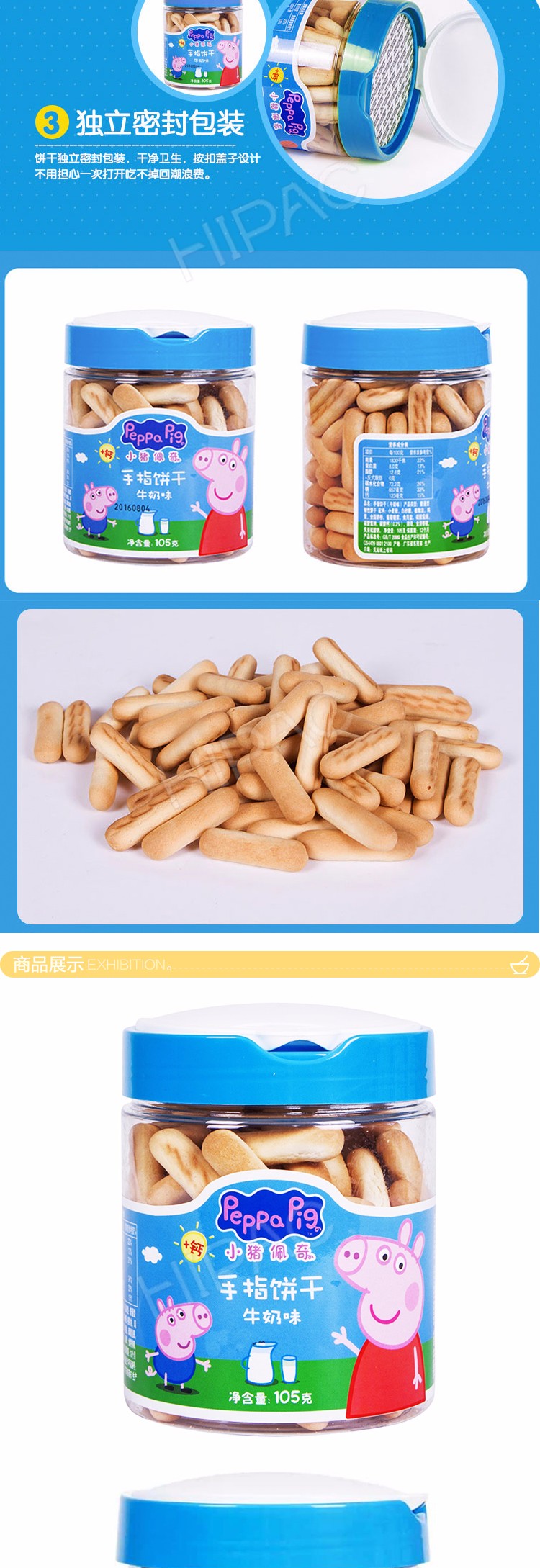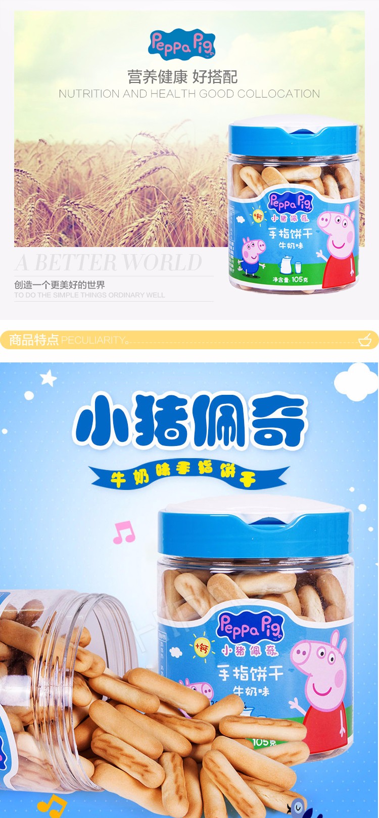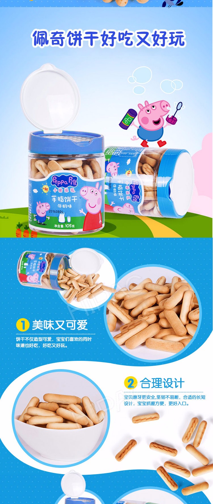 英国小猪佩奇 手指饼干牛奶味罐装105g /罐