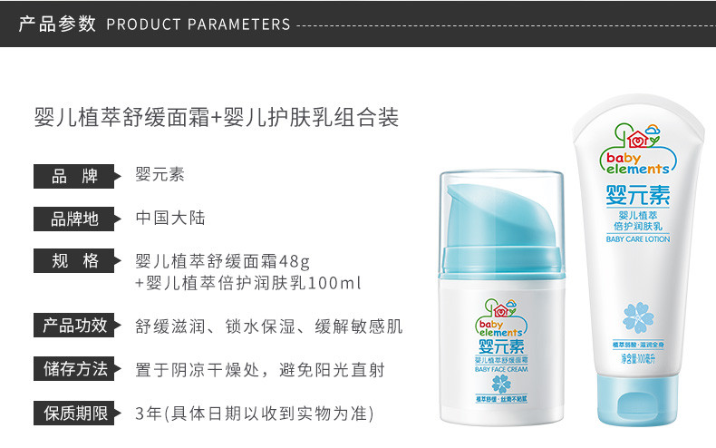 婴元素 婴儿植萃舒缓面霜48ML + 婴儿植萃倍护润肤乳100G