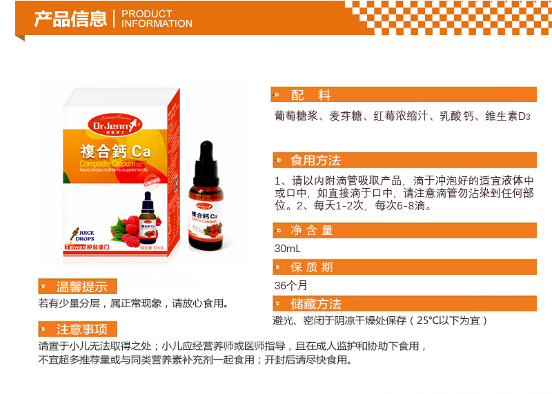 珍妮博士复合钙台湾原装进口30ml/瓶
