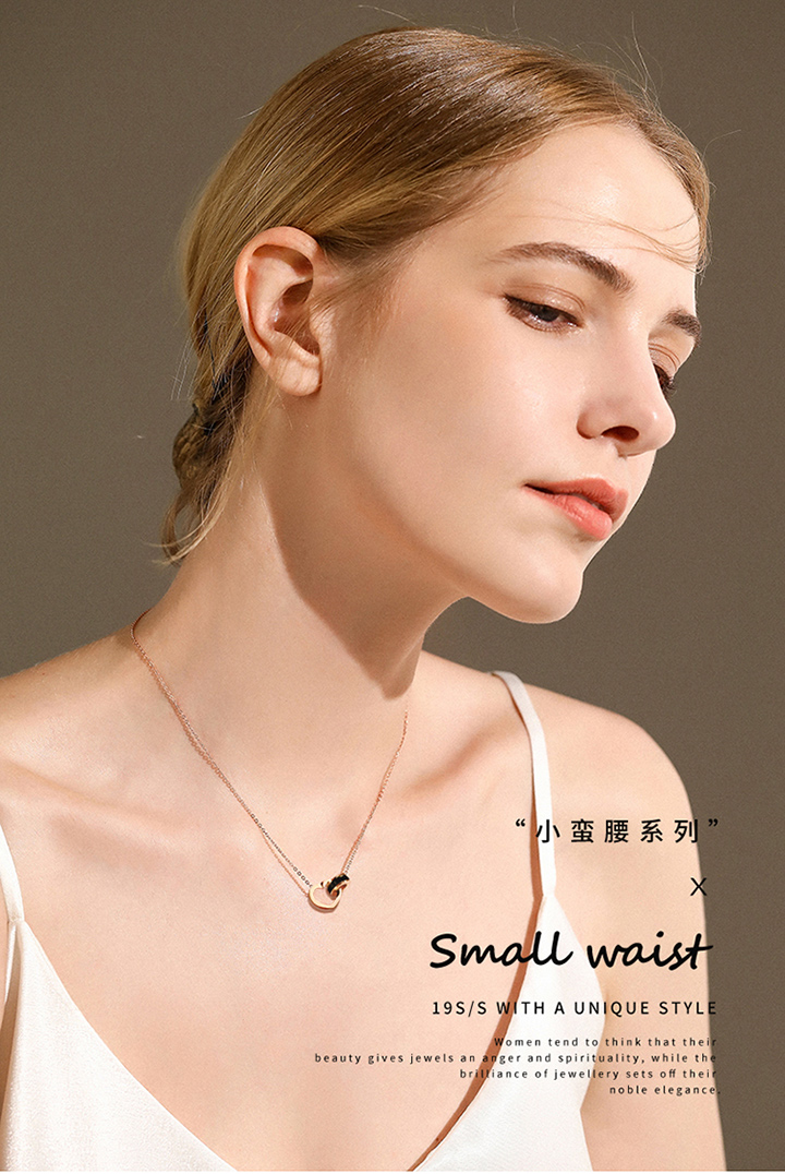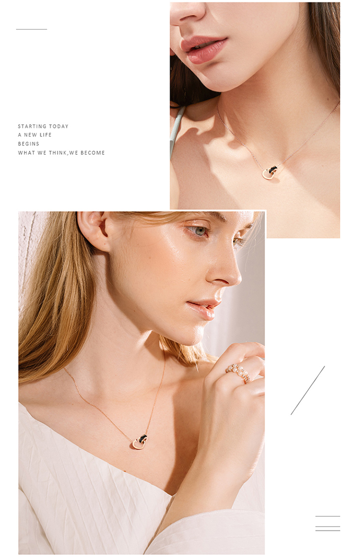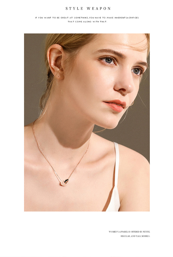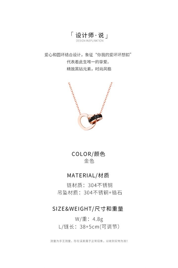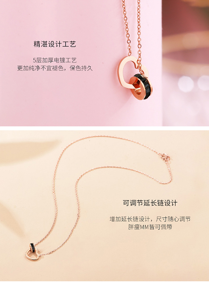 【GL Paris】罗马双环项链女时尚镀玫瑰金彩金锁链饰品佩饰