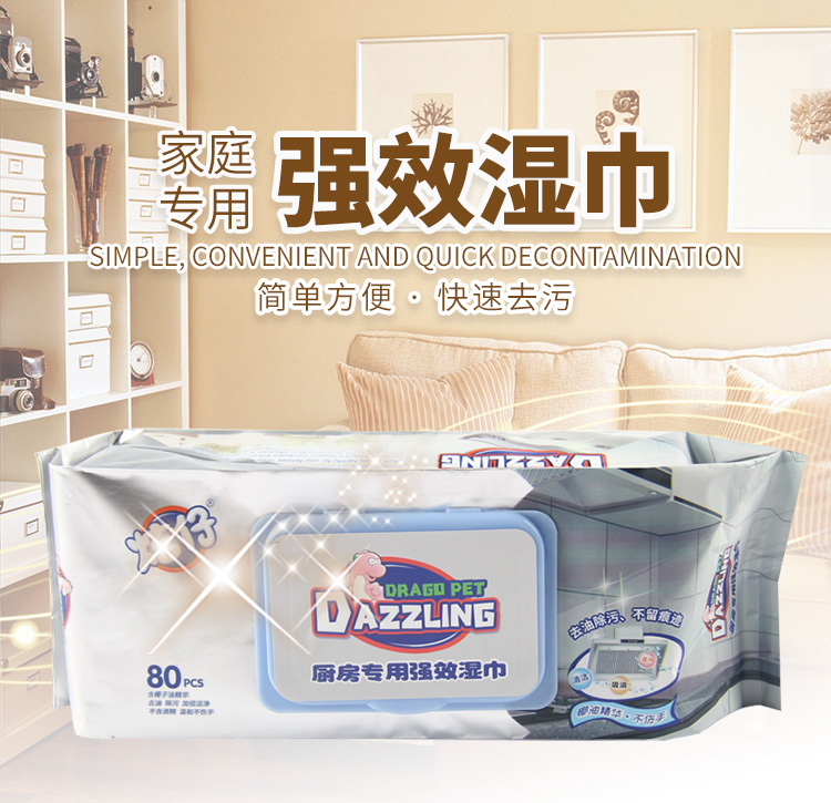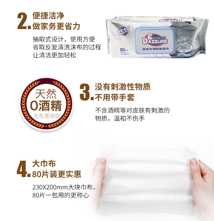 可爱多炫仔厨房专用强效湿巾80片/包盖巾-无箱