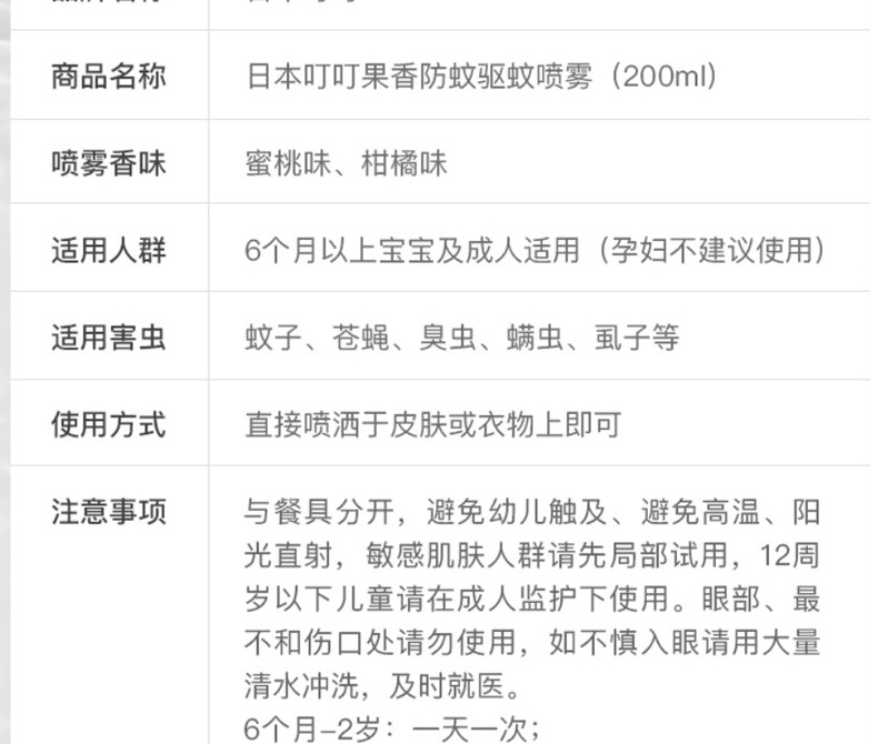 日本叮叮防虫驱蚊喷雾200ml/支【粉色】