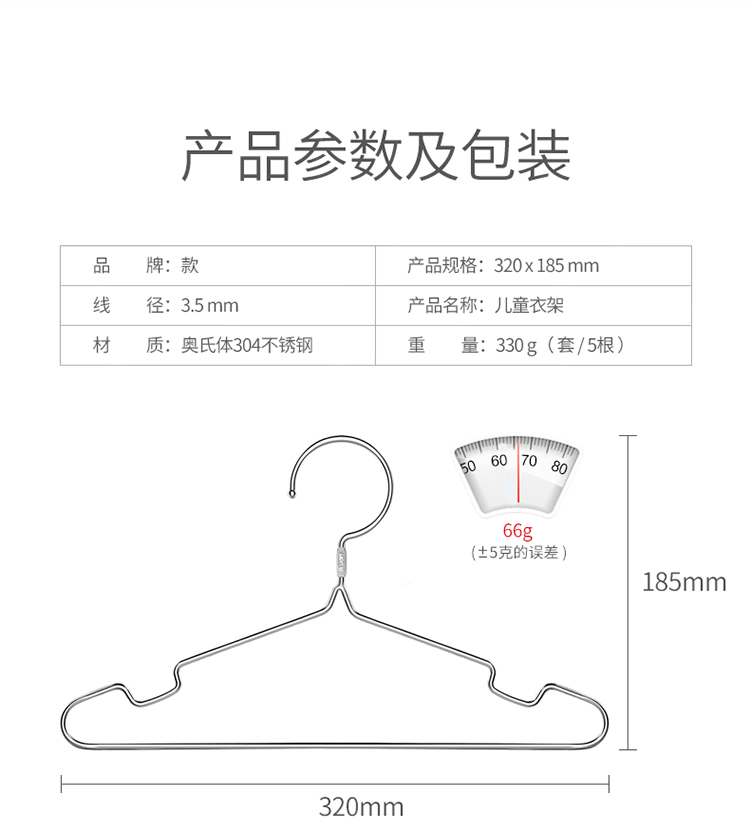 一款儿童衣架304不锈钢小号婴儿晾衣架无痕简易小孩防滑防风晾晒儿童小号衣架子