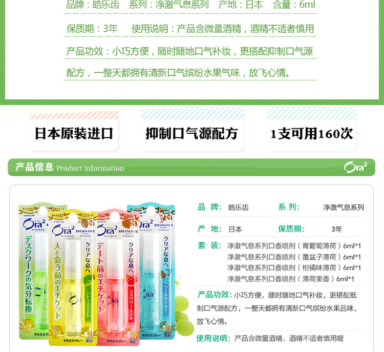 日本皓乐齿 Ora2 净澈气息口香喷剂(青葡萄薄荷味)