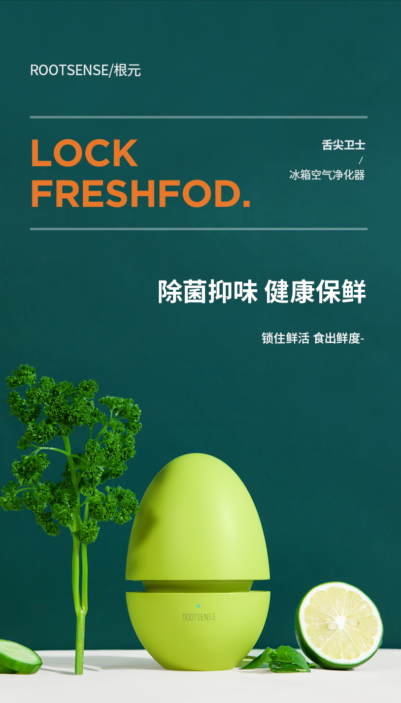 根元舌尖卫士 冰箱专用空气净化器臭氧除臭杀菌除味除菌剂盒神器 柠檬绿
