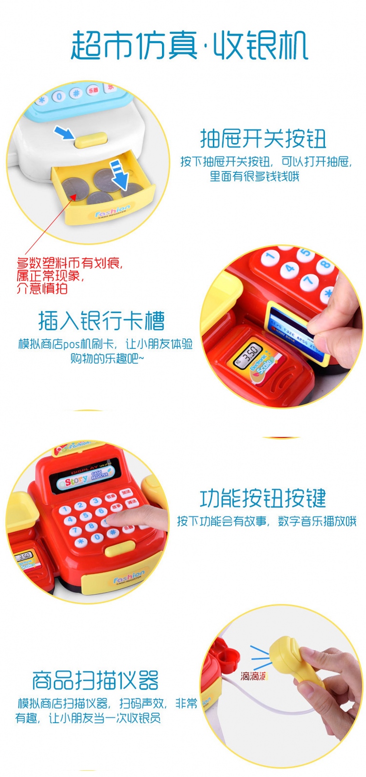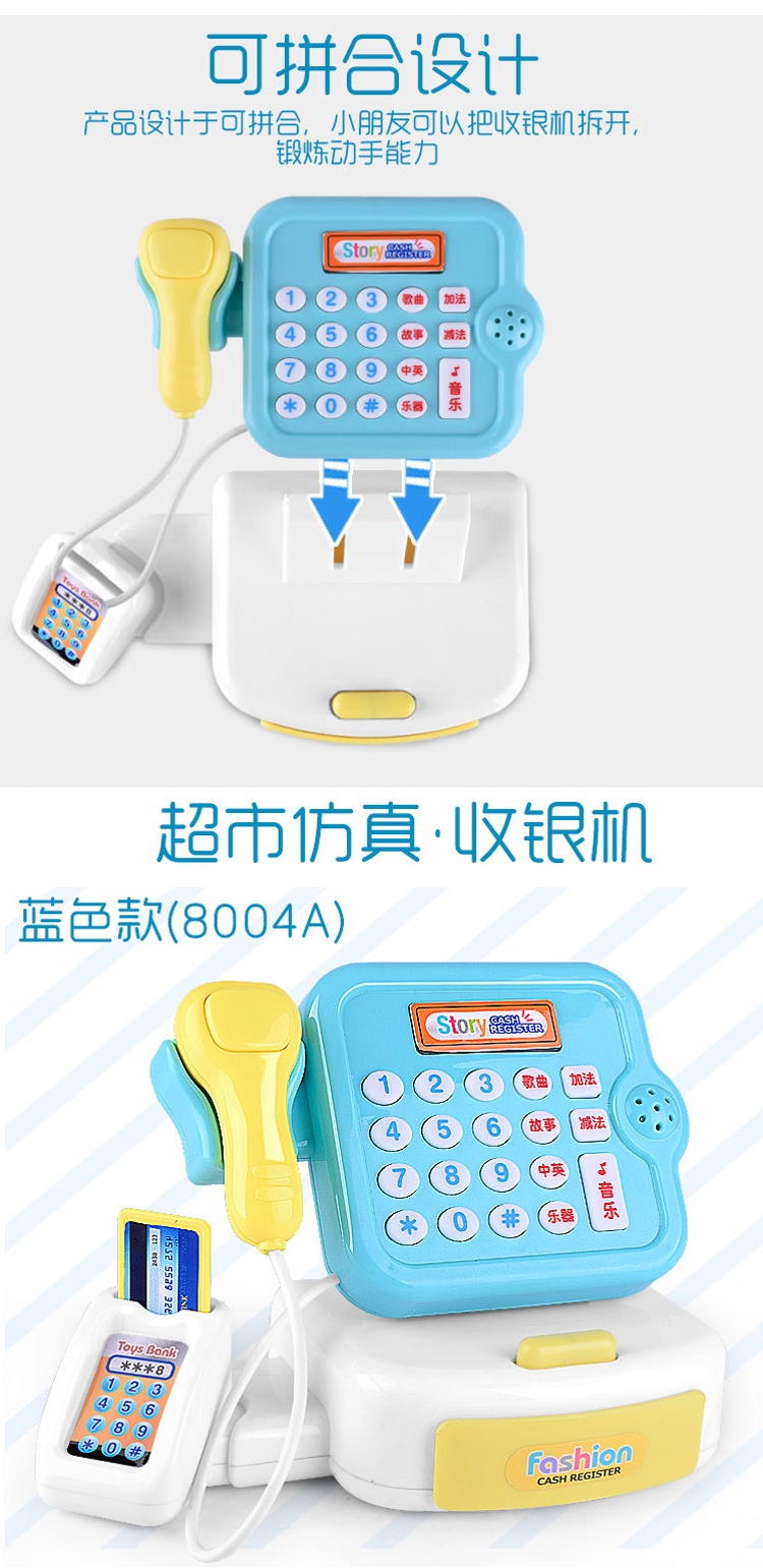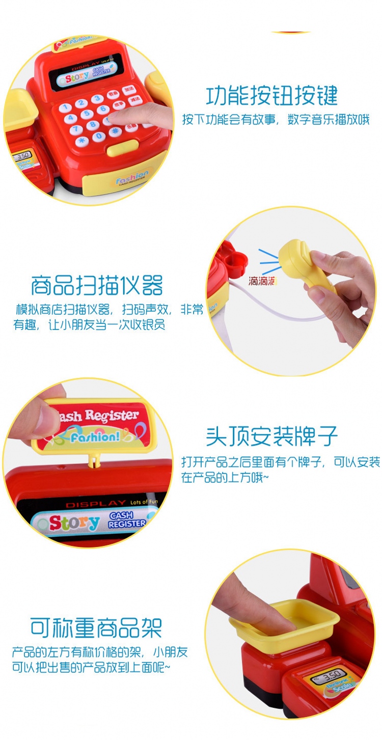 怡高达EIKODA儿童仿真超市收银机玩具 女孩益智多功能收银台过家家套装(红色)