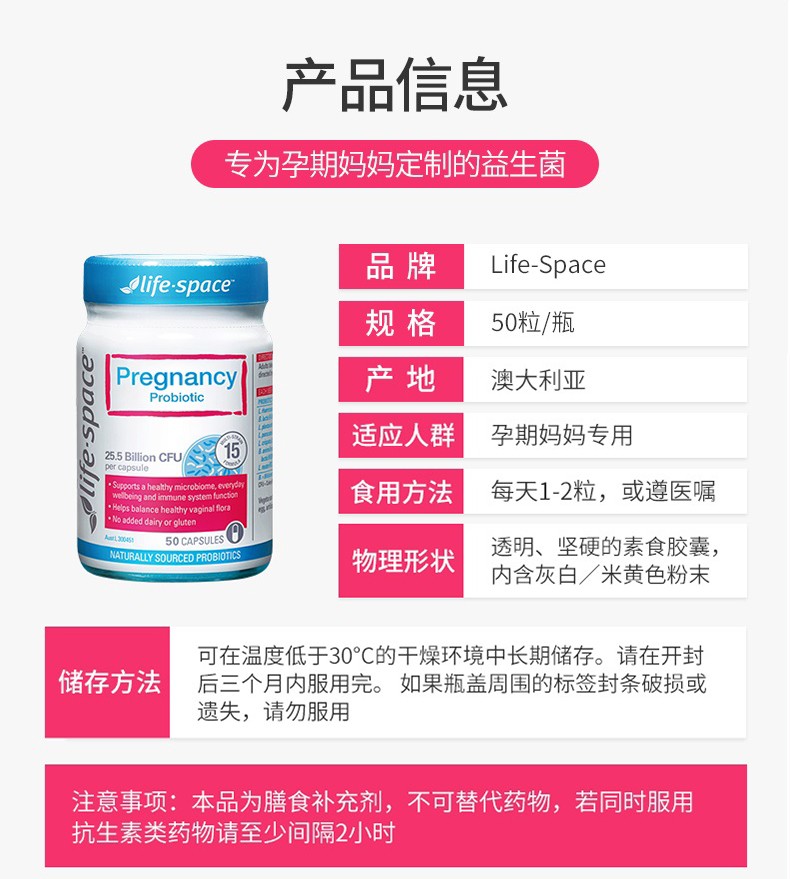 澳洲Life Space 益倍适 孕期益生菌胶囊 50粒/瓶