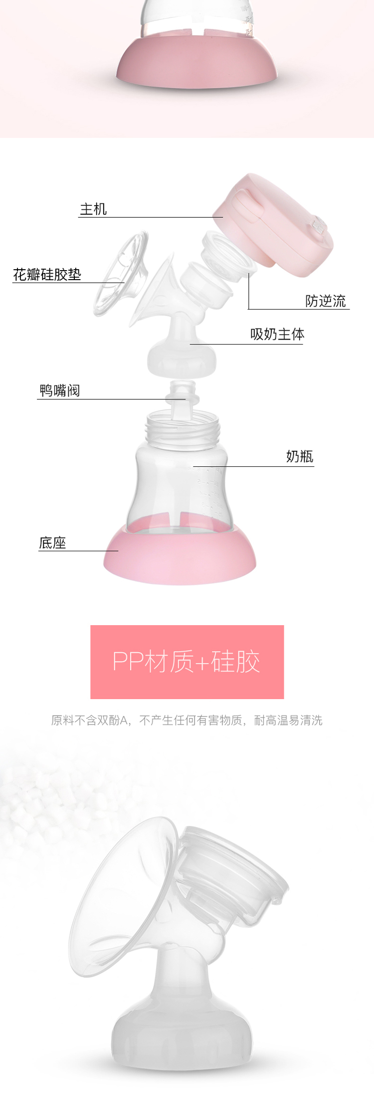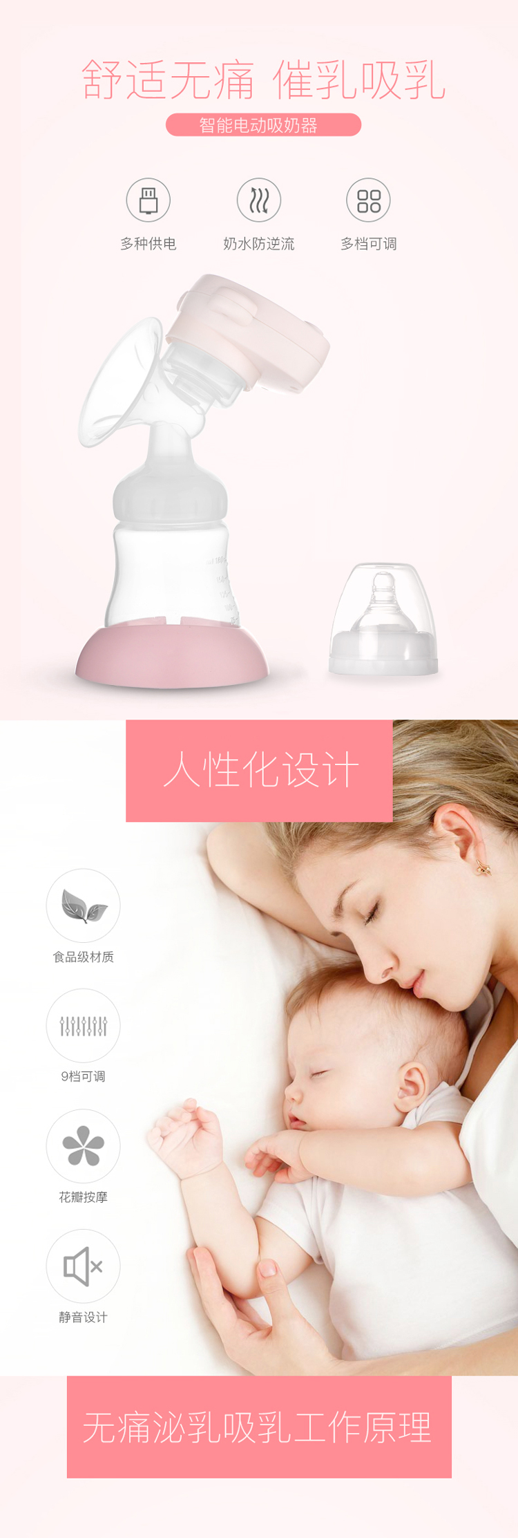 婴蓓吸奶器电动拔奶器产妇挤奶器吸力大静音粉色