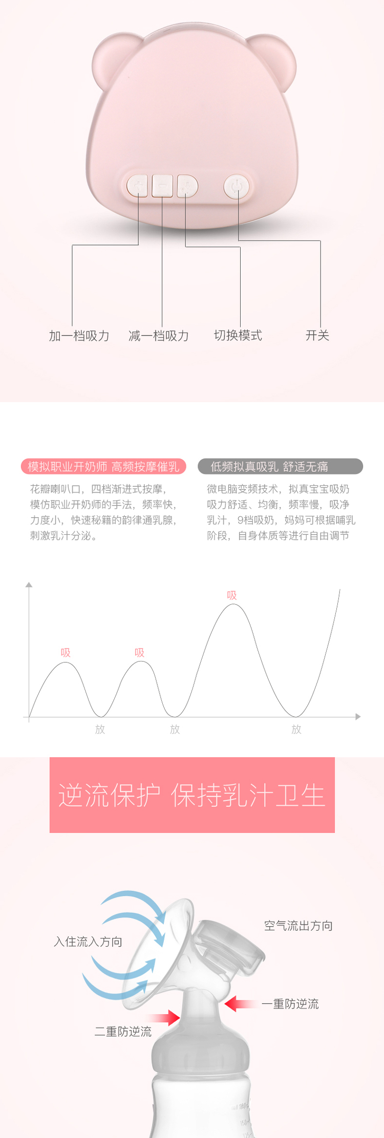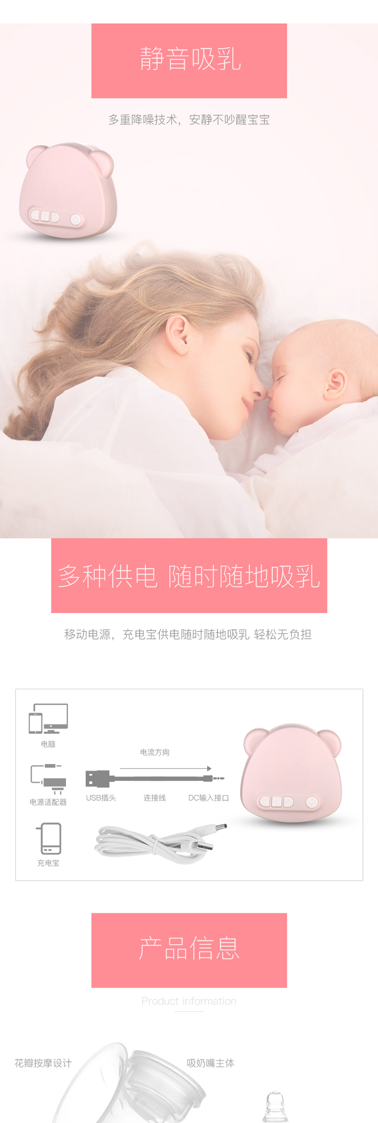 您所在的位置:首页 > 母婴用品  > 喂养用品 > 吸奶器  > 婴蓓吸奶器电动拔奶器产妇挤奶器吸力大静音粉色
