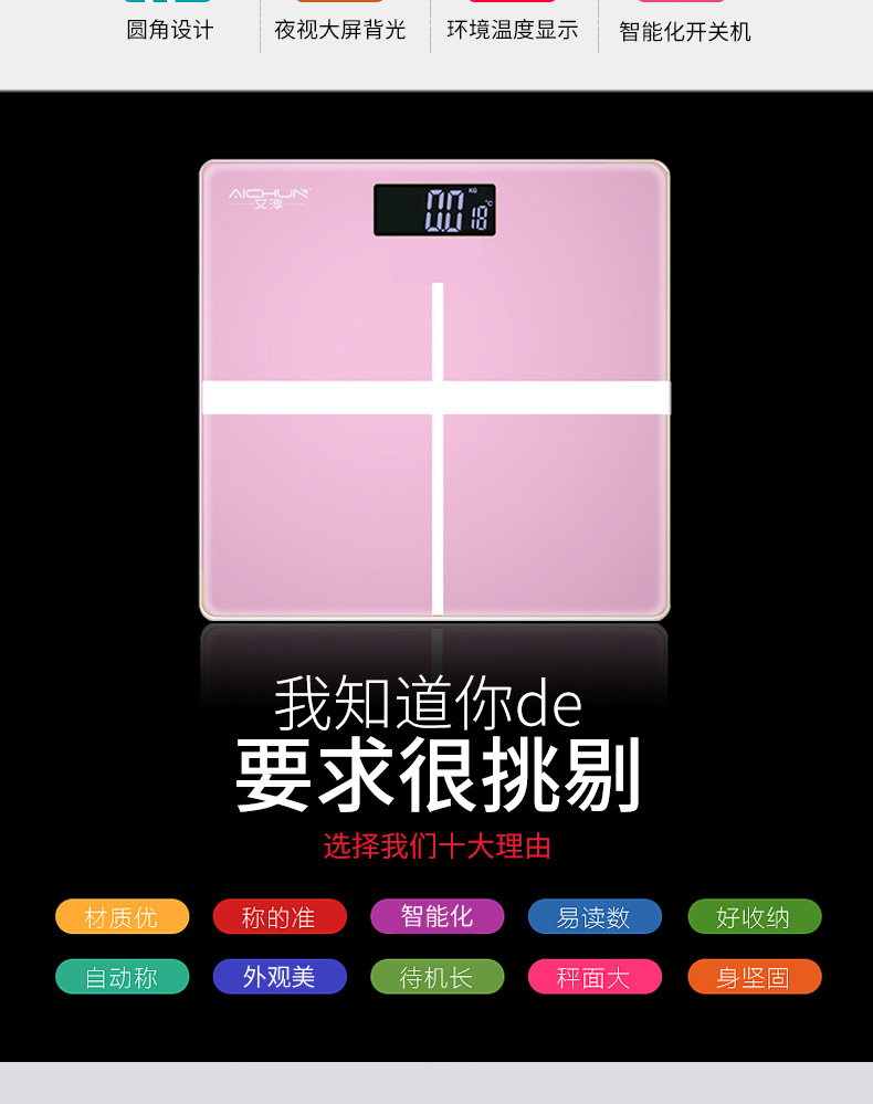 艾淳(AICHUN) 智能电子体重秤家用电子称健康秤人体秤