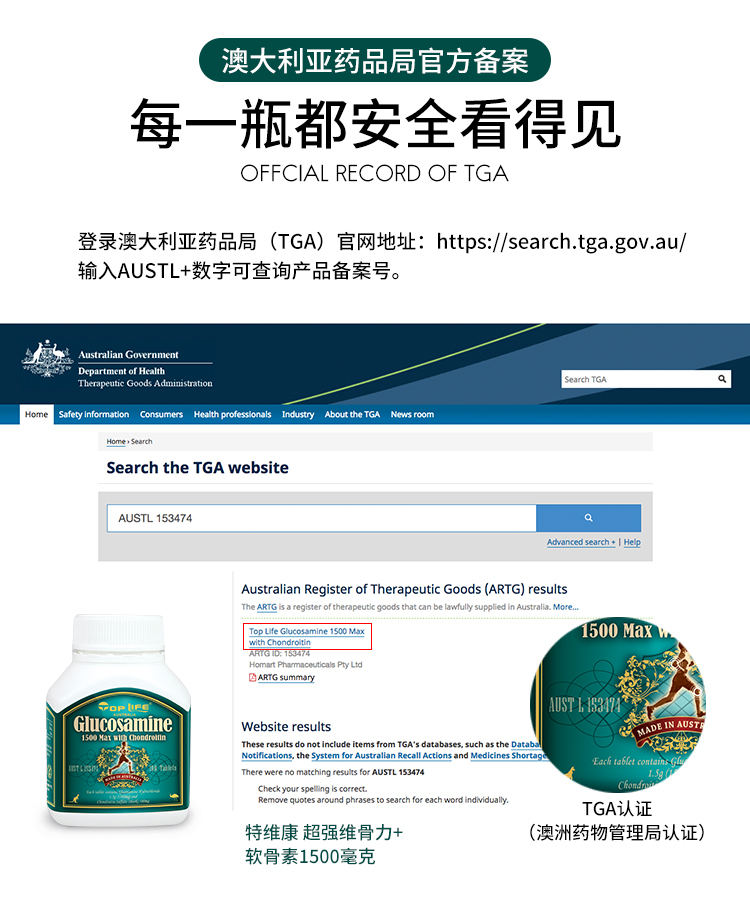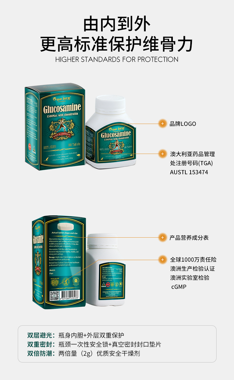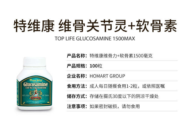 澳洲Top Life特维康 超强维骨关节灵+软骨素1500mg 100粒