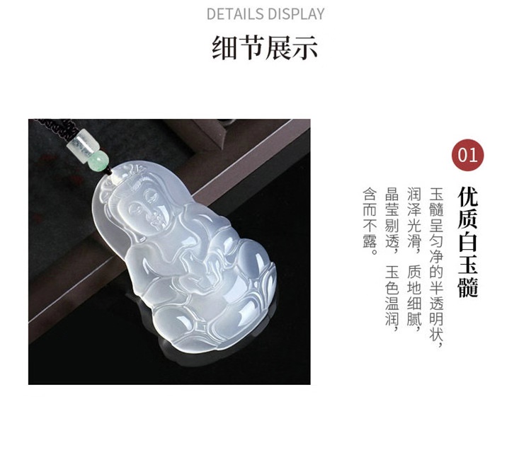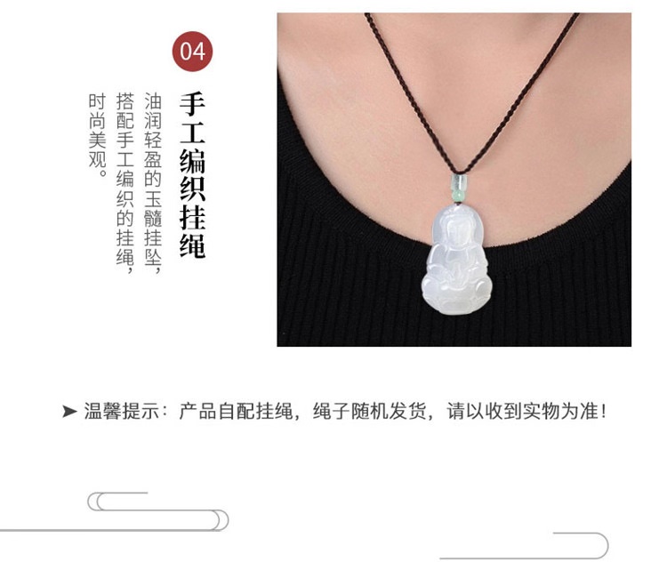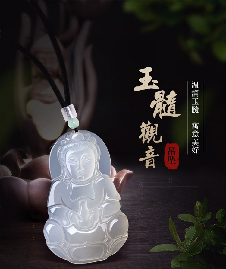 您所在的位置:首页 > 珠宝首饰  > 银饰 > 颈饰  > 四福珠宝 天然A货白玉髓观音吊坠配绳项链 送子观音 发财观音