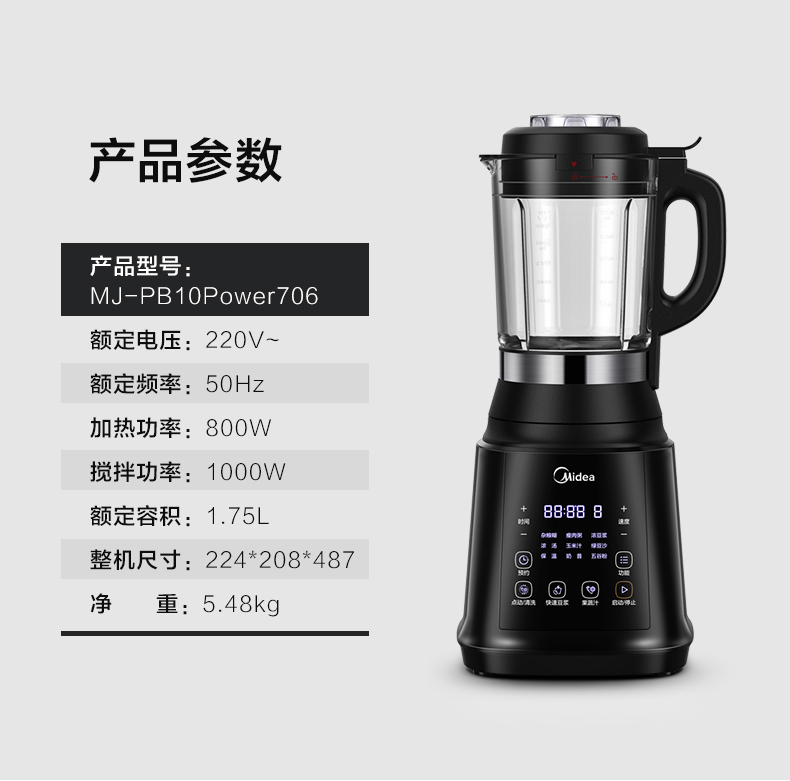 【授权商品】美的(Midea)破壁机多功能料理机PB10Power706 7KG