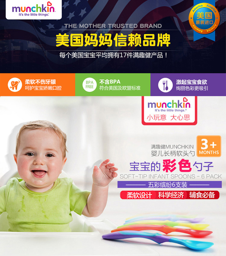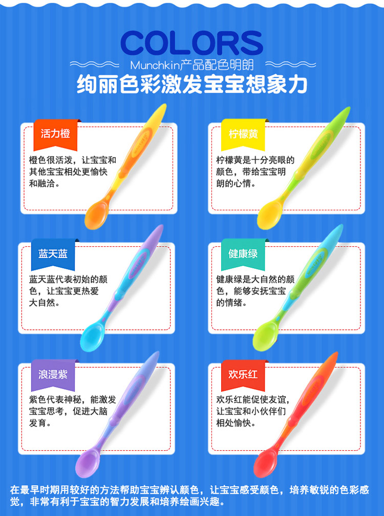 您所在的位置:首页 > 母婴用品  > 喂养用品 > 儿童餐具  > 【半价清仓】Munchkin 满趣健软勺婴儿宝宝彩色长柄软头勺6个装