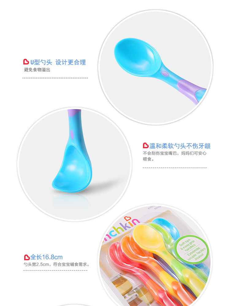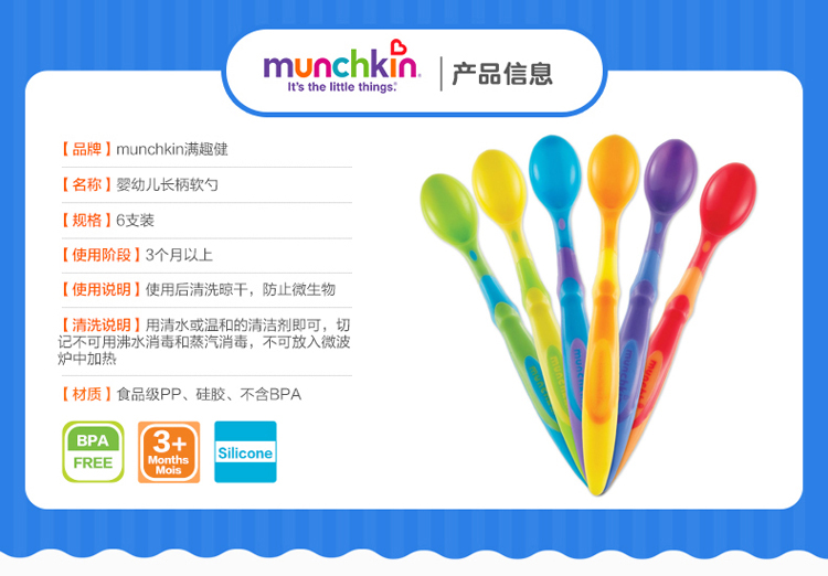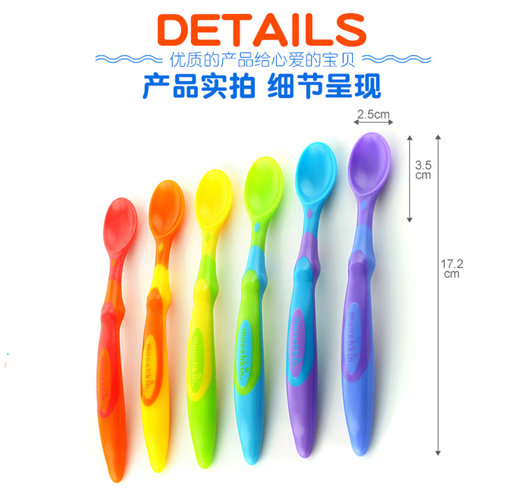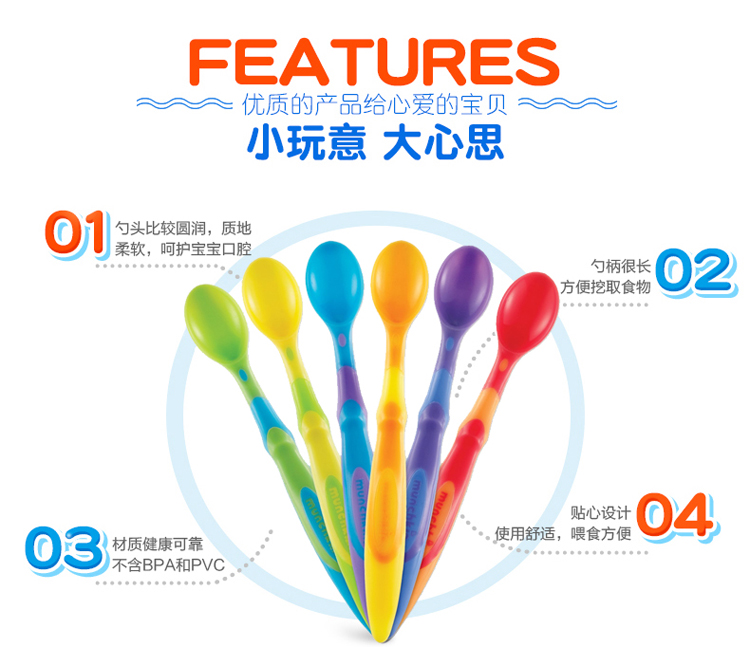 【半价清仓】Munchkin 满趣健软勺婴儿宝宝彩色长柄软头勺6个装