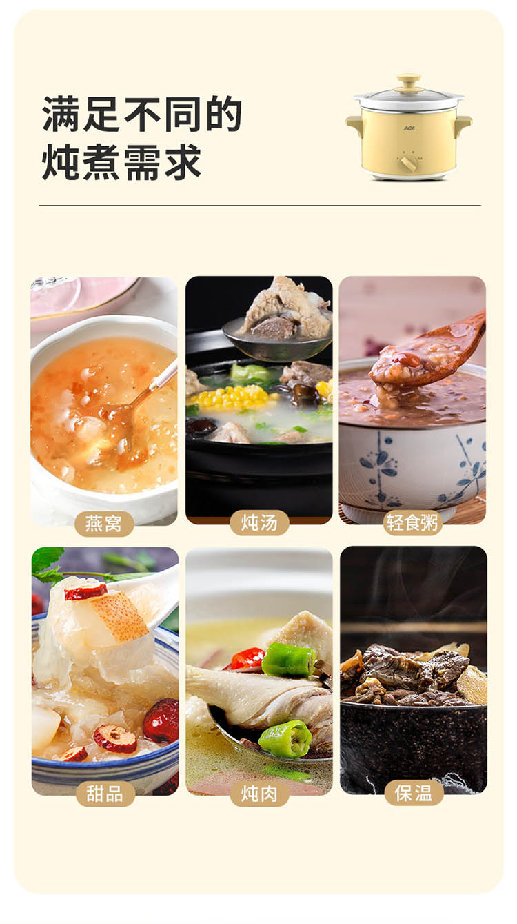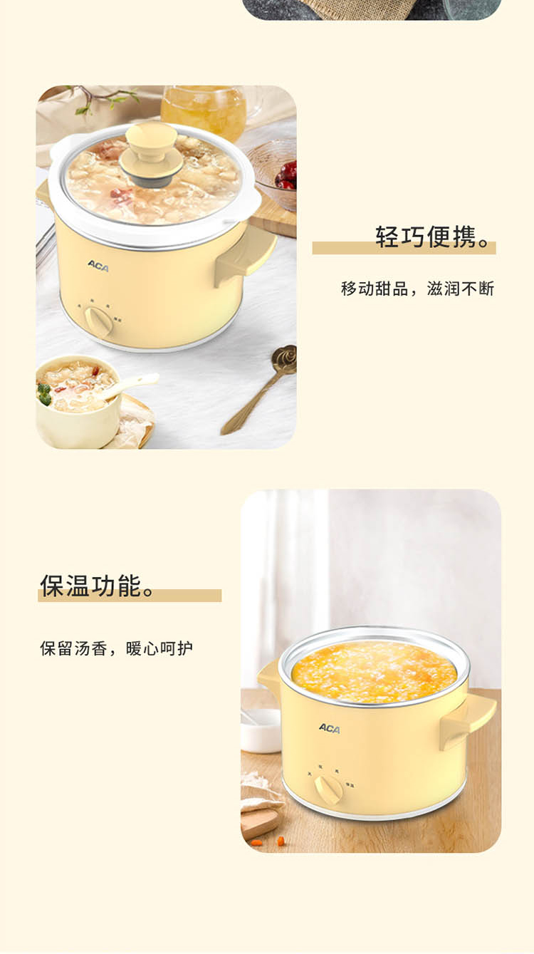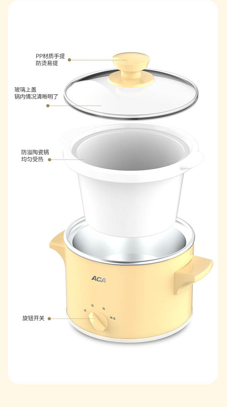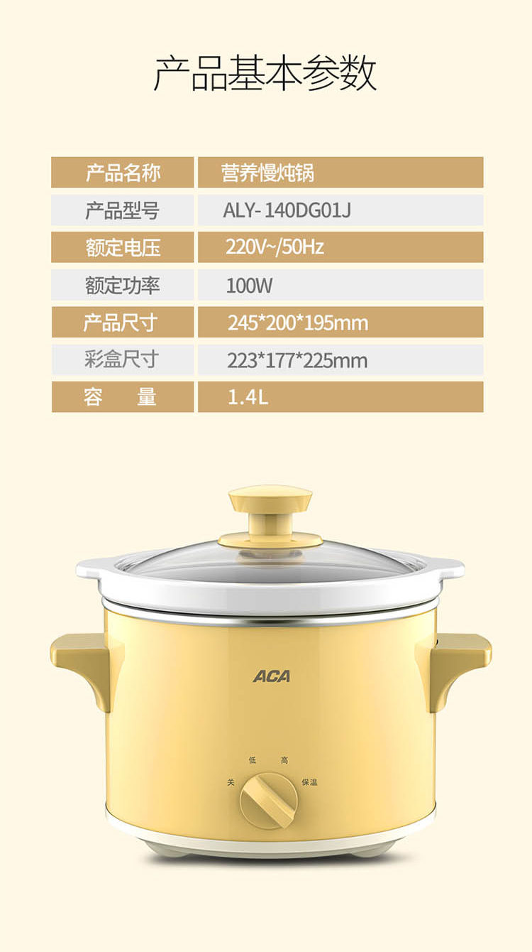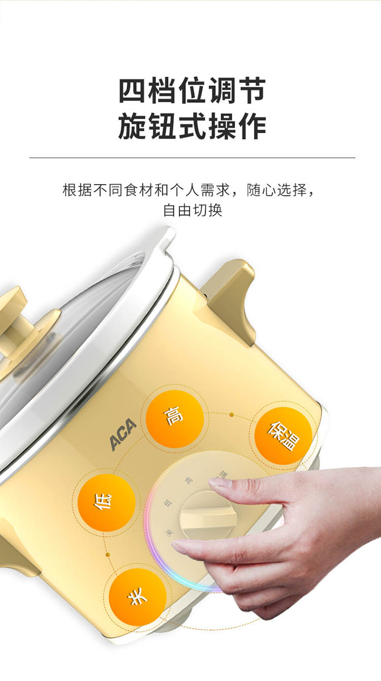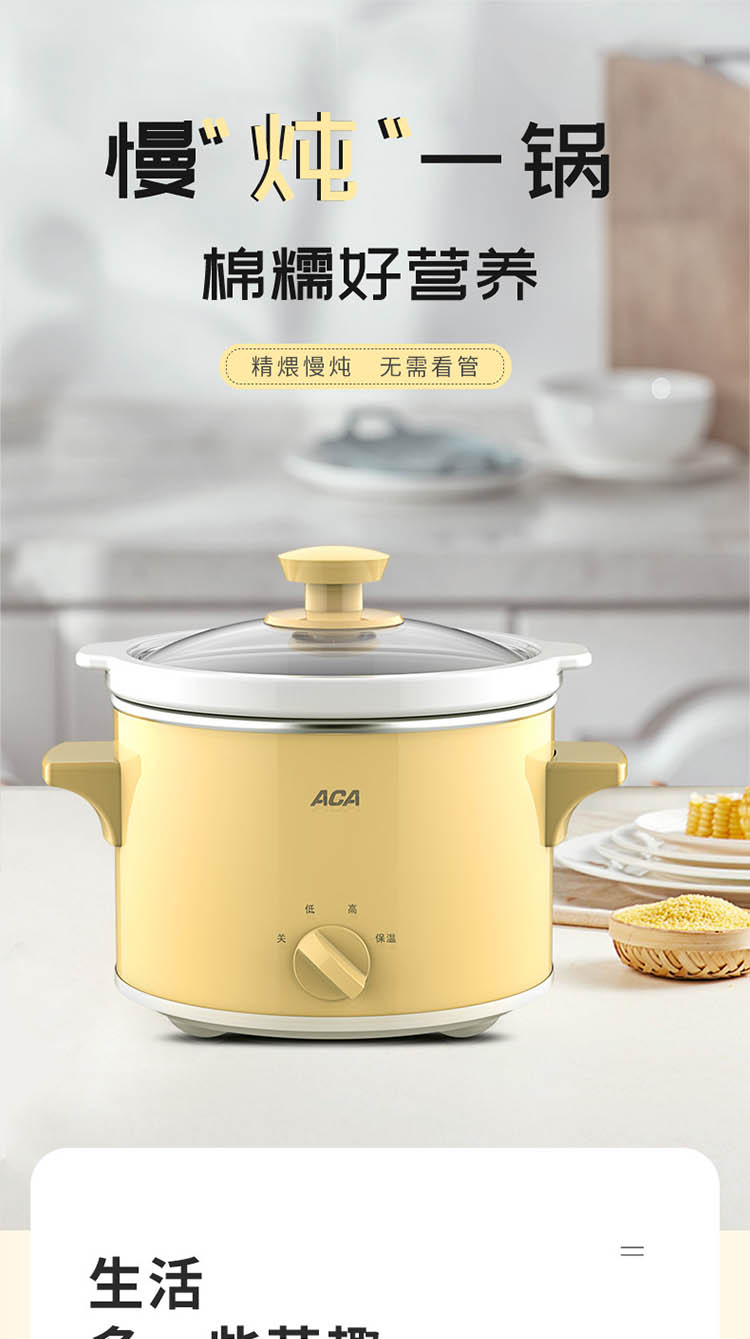 您所在的位置:首页 > 家用电器  > 厨房小电 > 其它厨房电器  > 【授权商品】ACA/北美电器营养慢炖锅 ALY-140DG01J陶瓷内胆煲粥煲汤环绕立体加热电炖锅1.4L