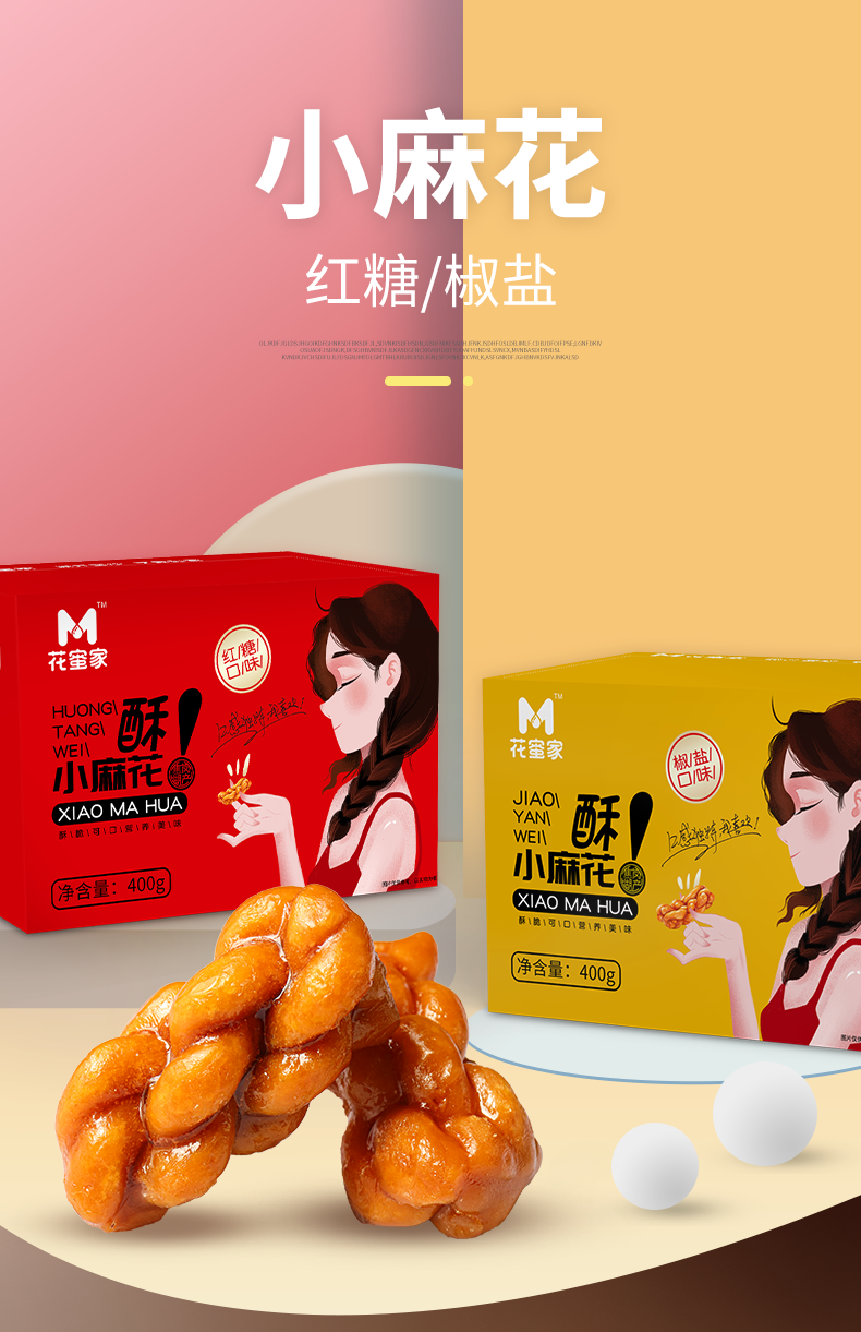花蜜家小麻花椒盐味 香酥脆休闲食品办公室零食 400g/箱