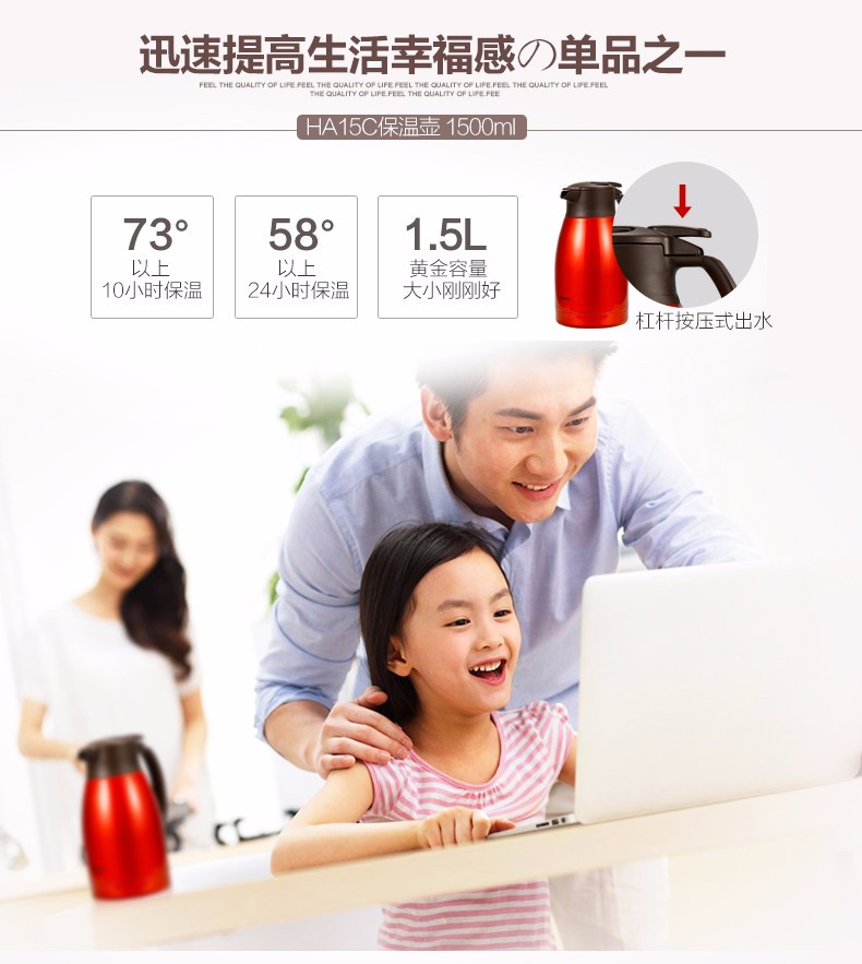 ZOJIRUSHI/象印 手提式不锈钢真空保温壶 SH-HA15C 1.5L 红色