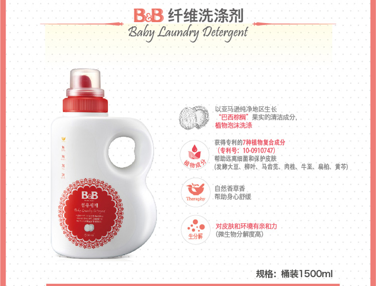 韩国保宁蓓尔婴儿洗衣液瓶装1500ml