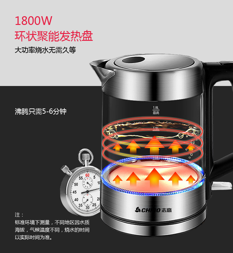 您所在的位置:首页 > 家用电器  > 厨房小电 > 电水壶/热水瓶  > 志高玻璃电热水壶ZG-8802 容量1.8L