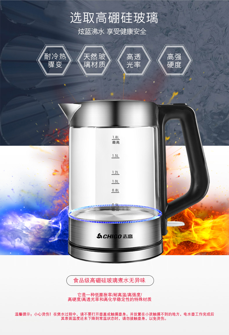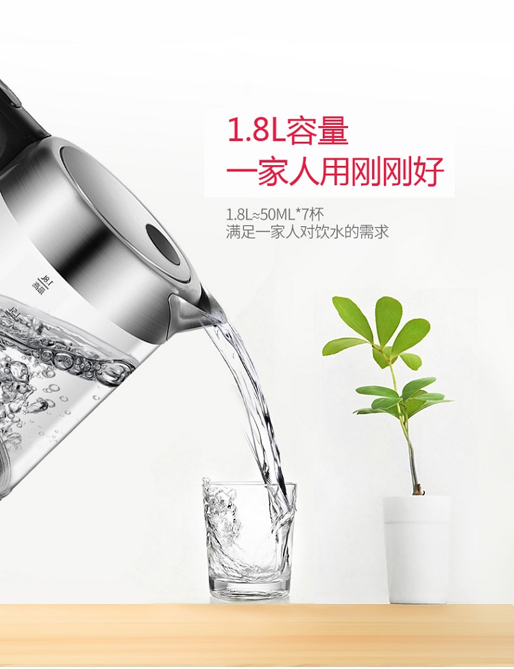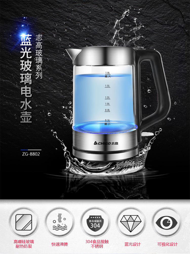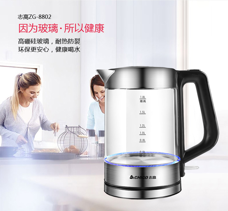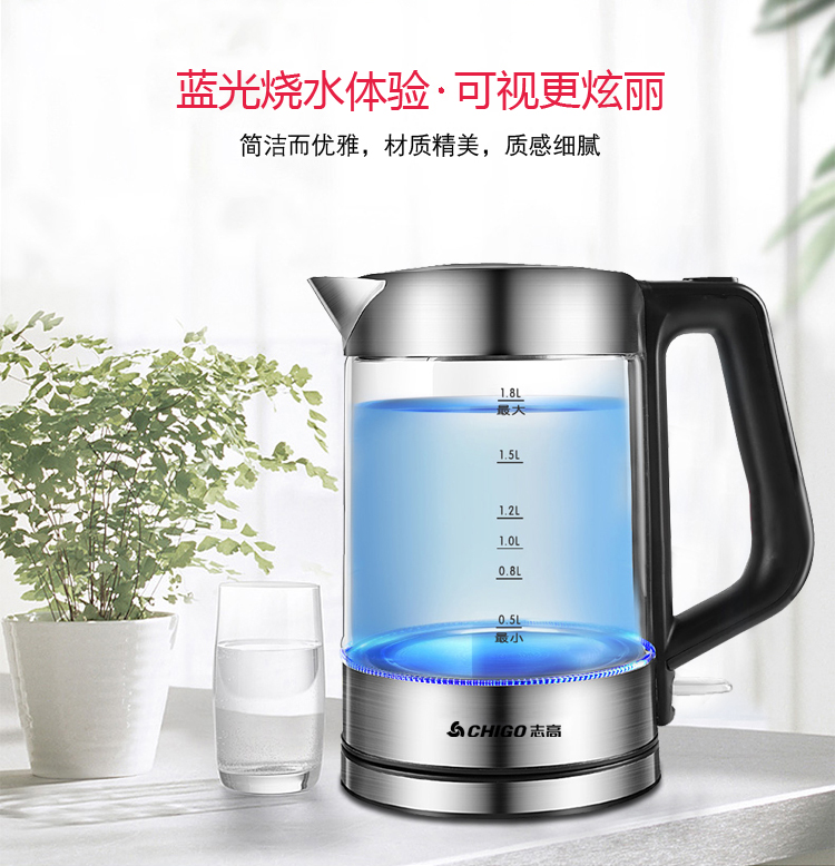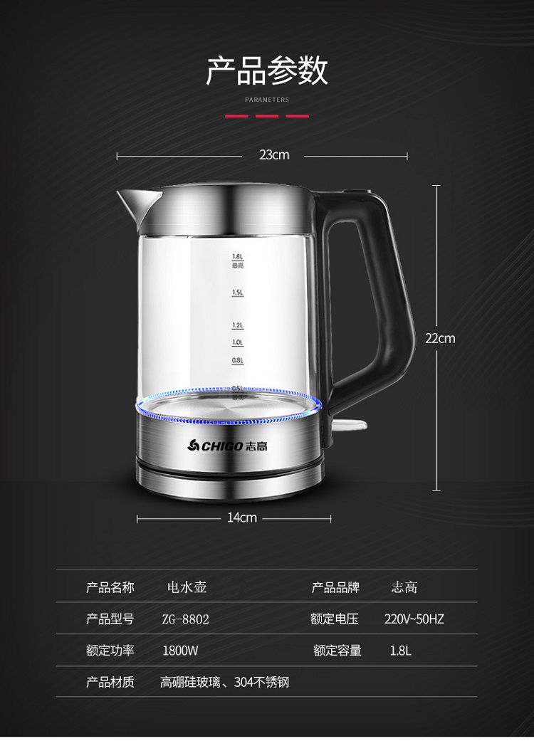 志高玻璃电热水壶ZG-8802 容量1.8L