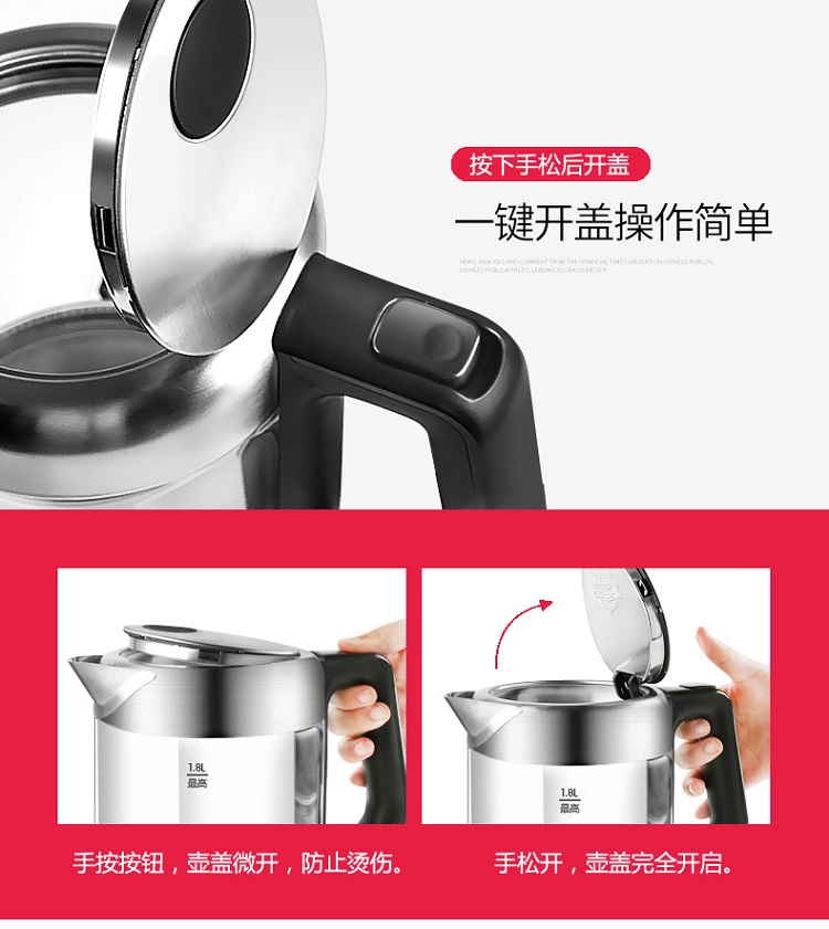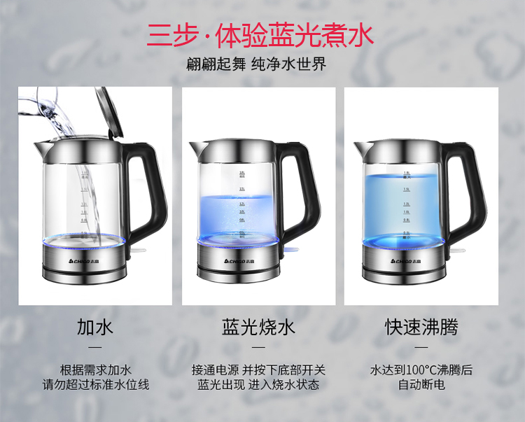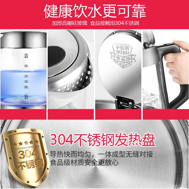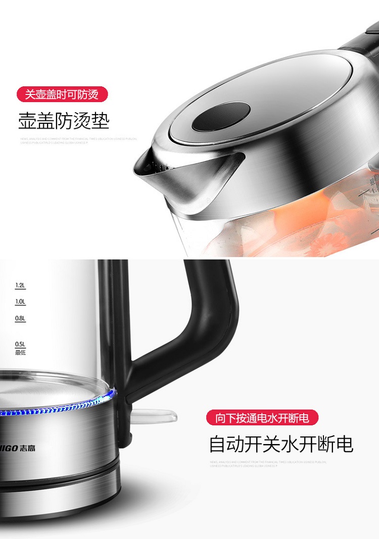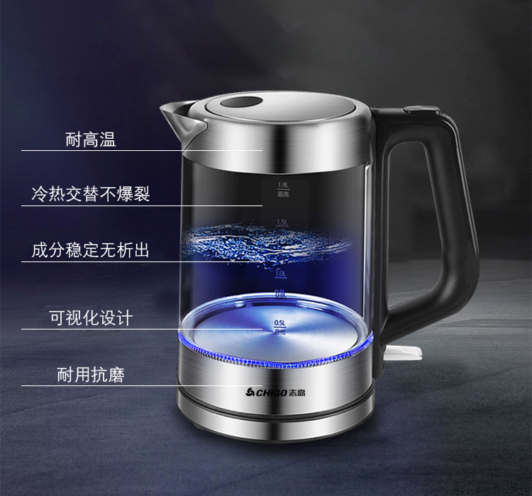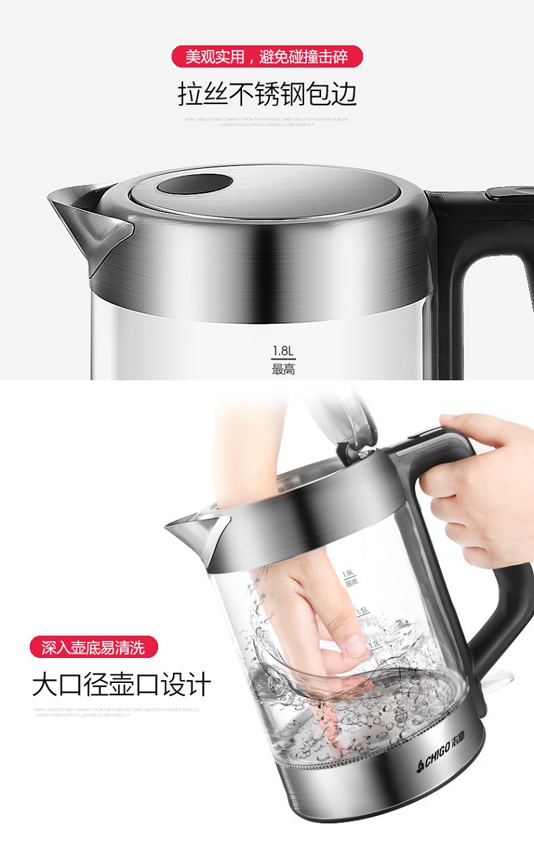 志高玻璃电热水壶ZG-8802 容量1.8L