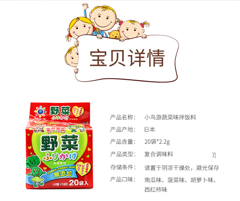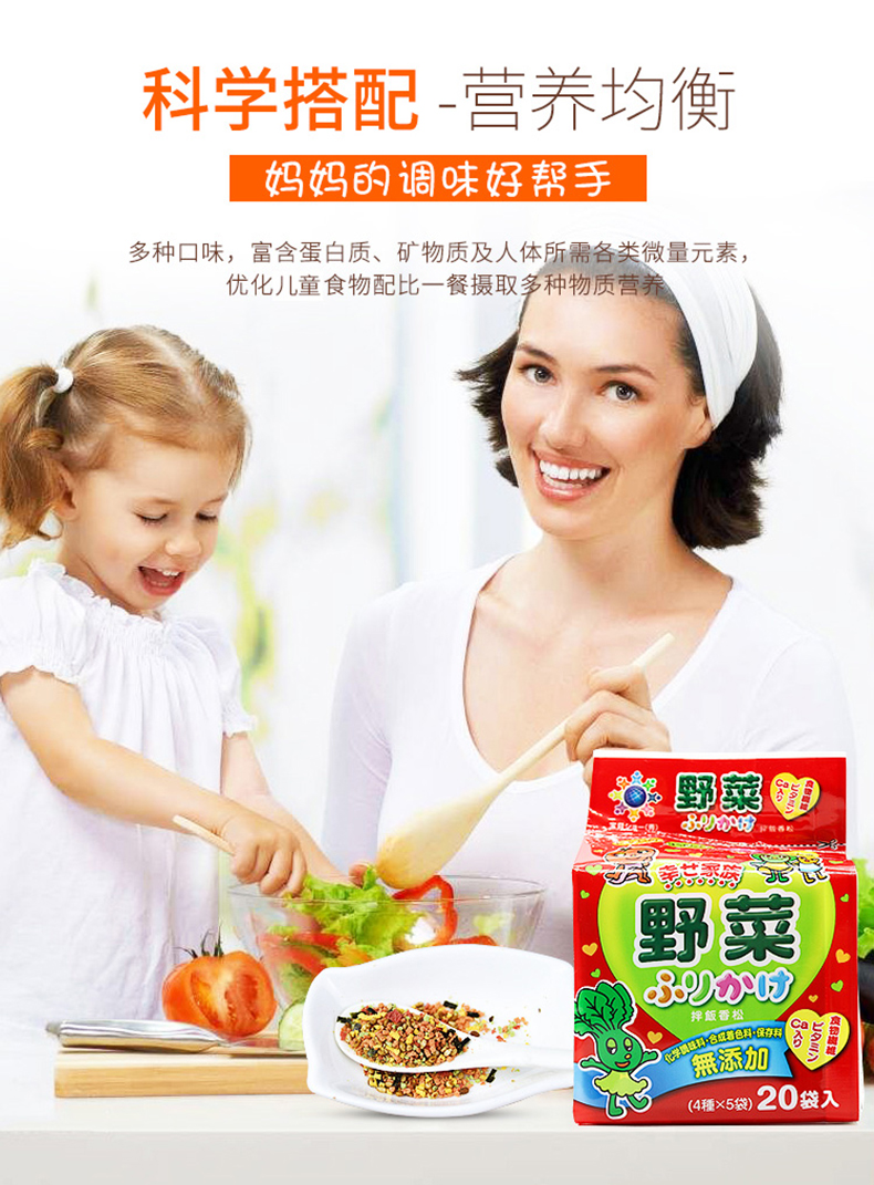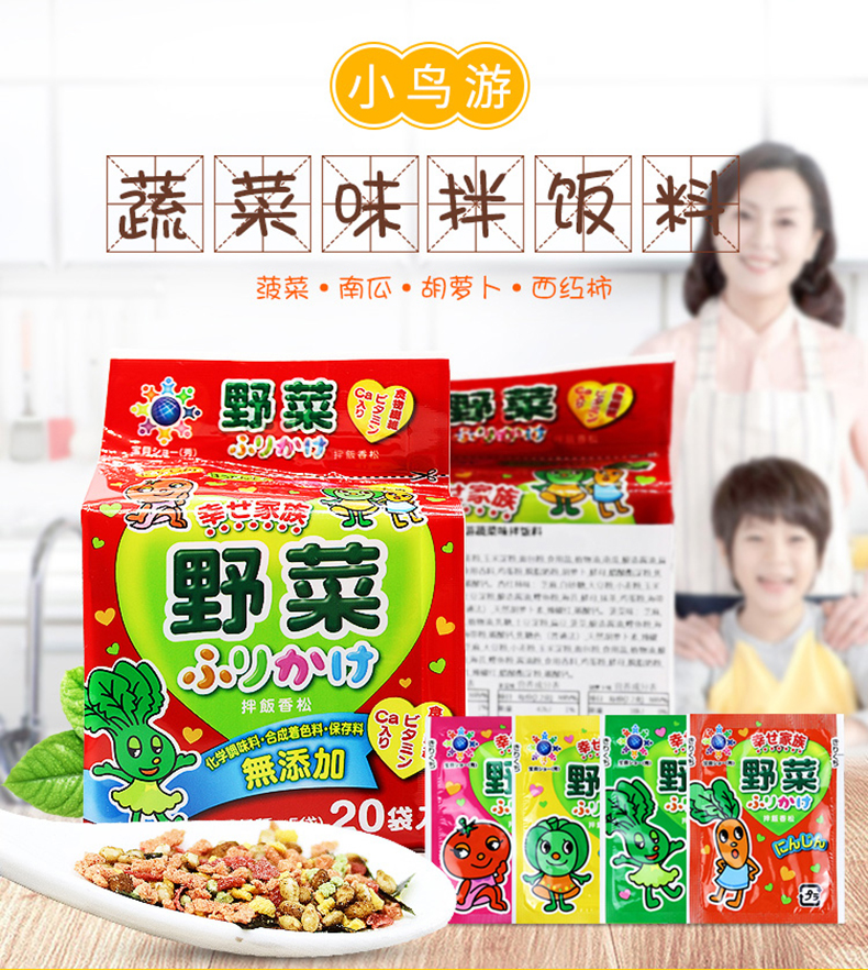 您所在的位置:首页 > 母婴用品  > 营养辅食 > 宝宝零食  > 日本进口和寓良品拌饭料辅食宝宝调料儿童调味品四种蔬菜味20小袋/包(44g)