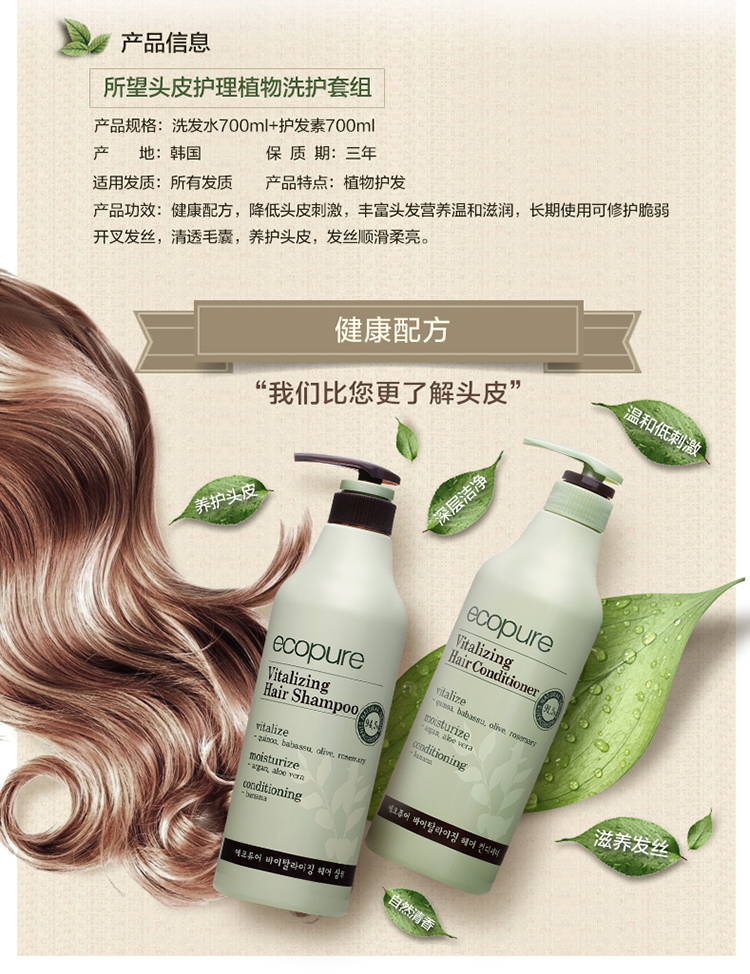 韩国SOMANG/所望植物洗发水护发素700ml套装(洗发水+护发素)