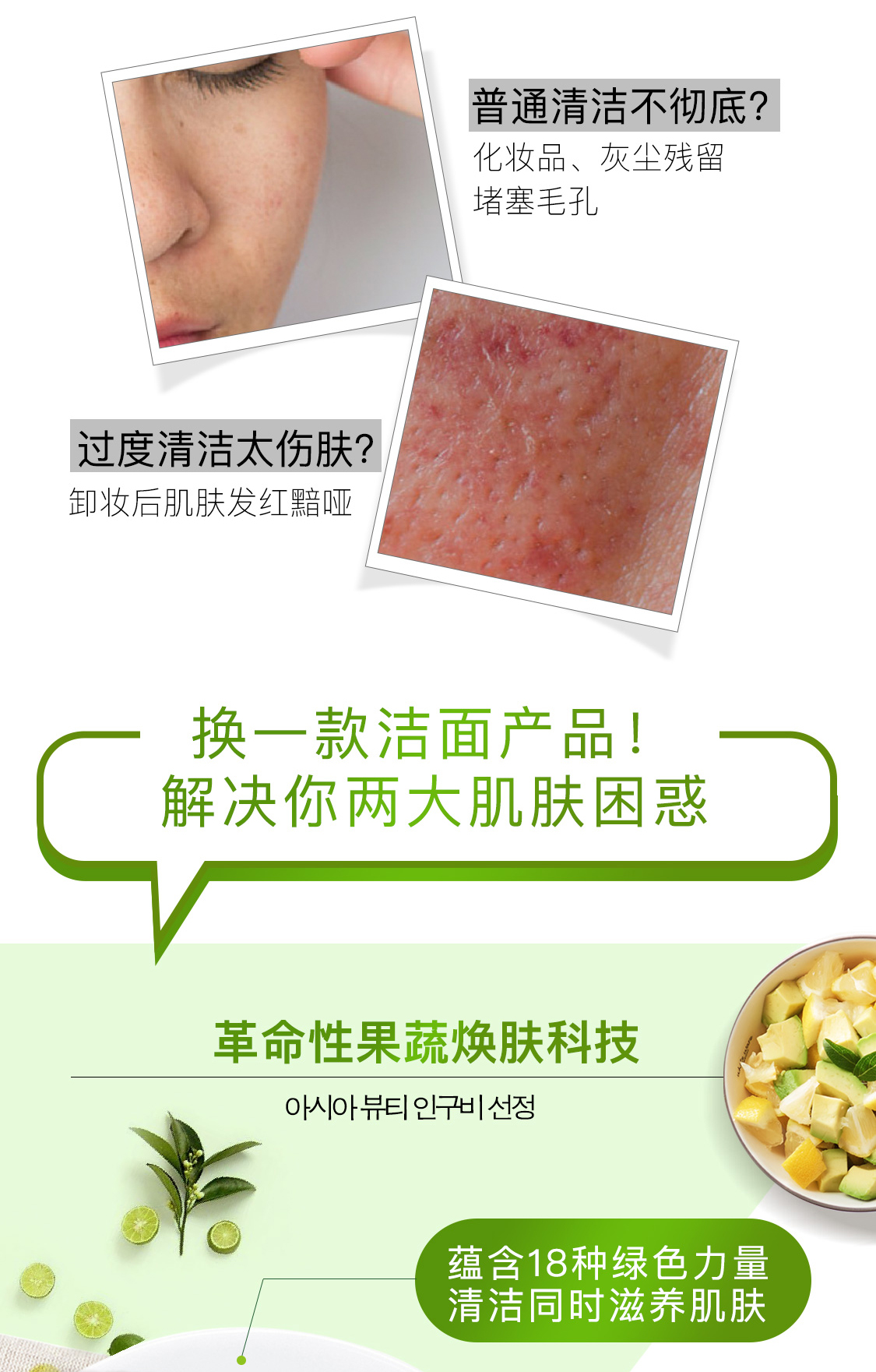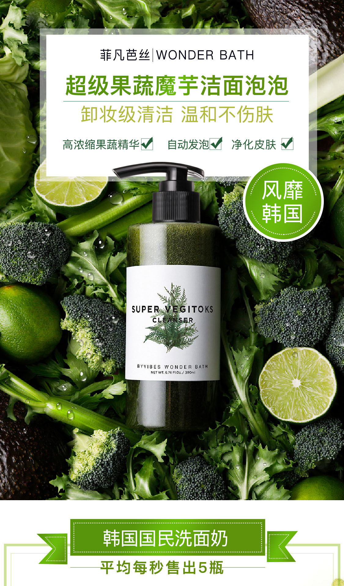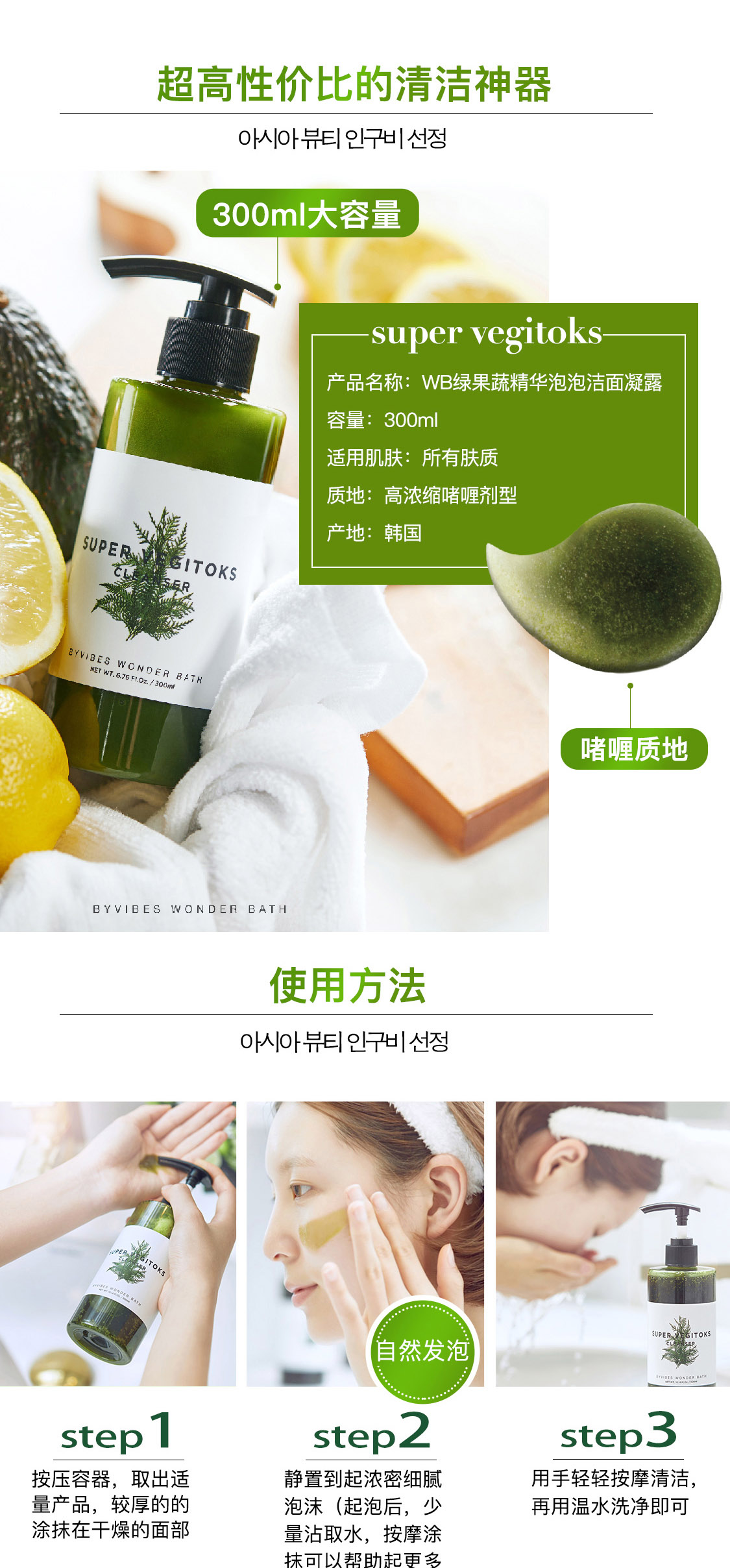 菲凡芭丝 WB绿果疏精华洁面温和清洁保湿卸妆洗面奶皮肤消毒
