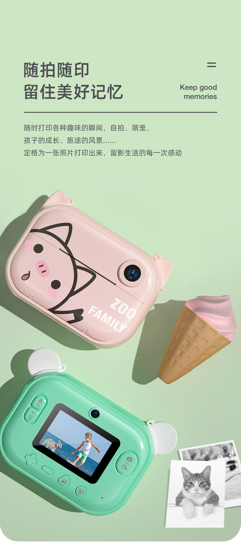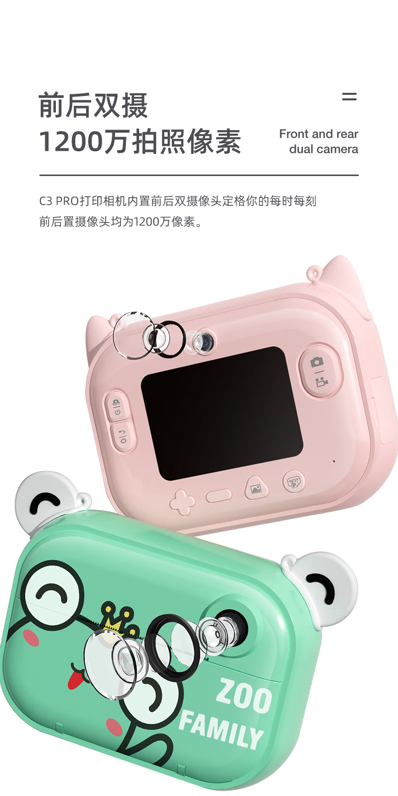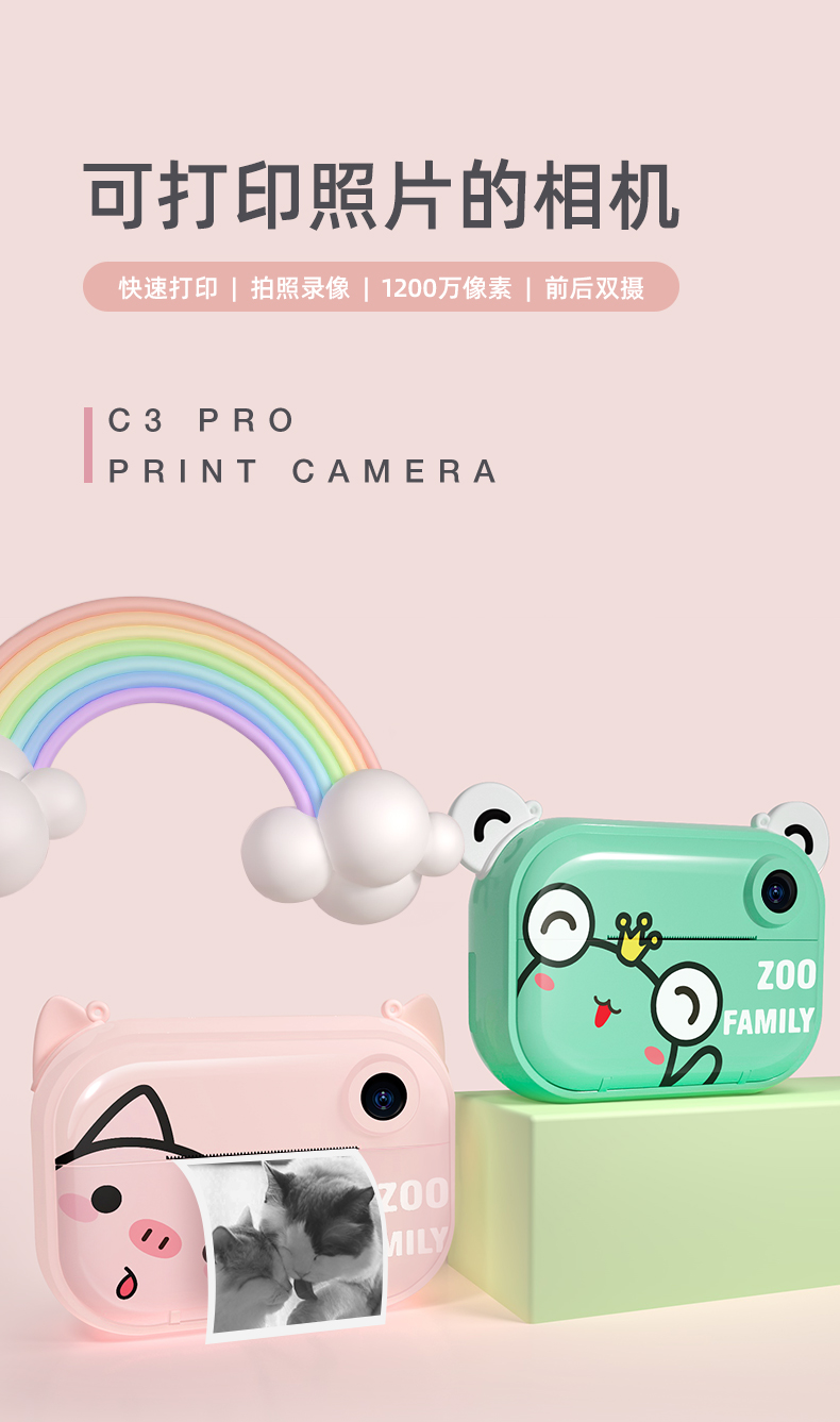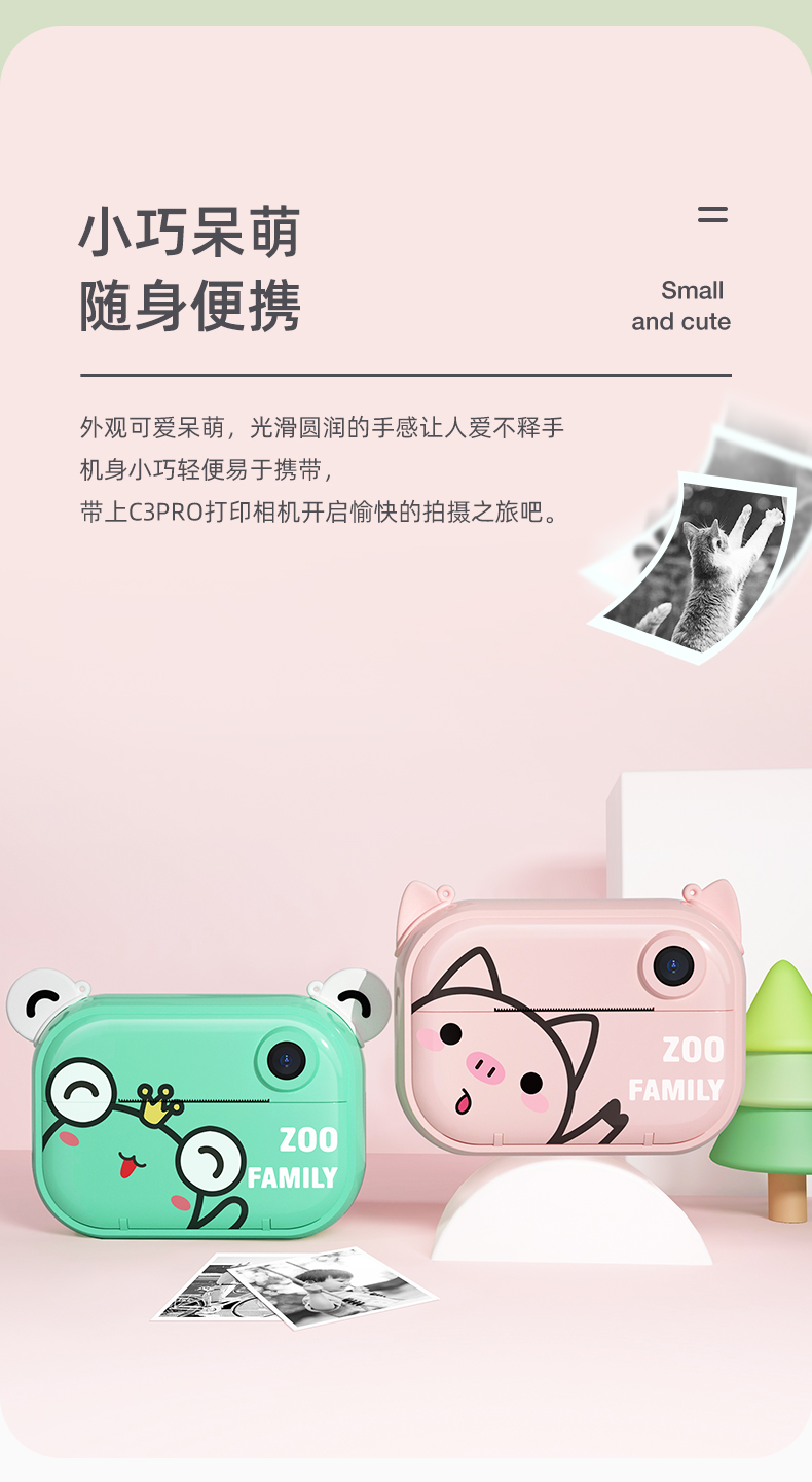 萌宝拍C3 WIFI双摄打印相机 含32G内存卡 粉小猪