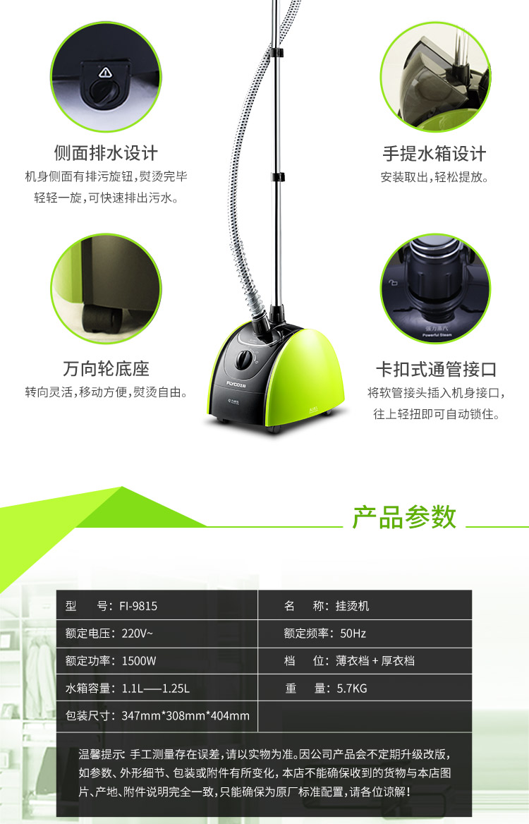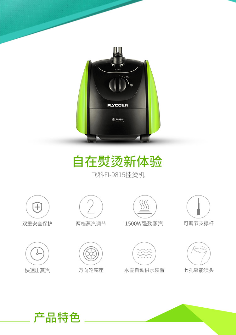 飞科(FLYCO)蒸汽挂烫机 挂式熨斗 1500W FI-9815