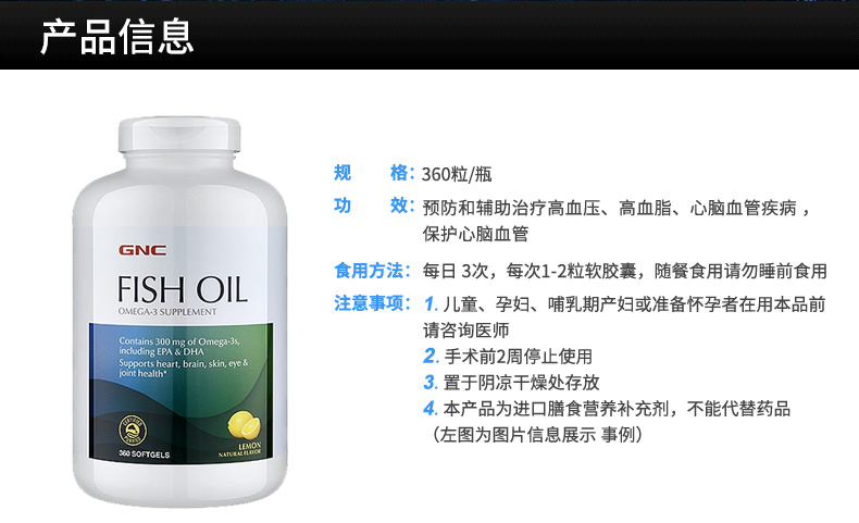 美国 健安喜GNC深海鱼油软胶囊家庭装360粒