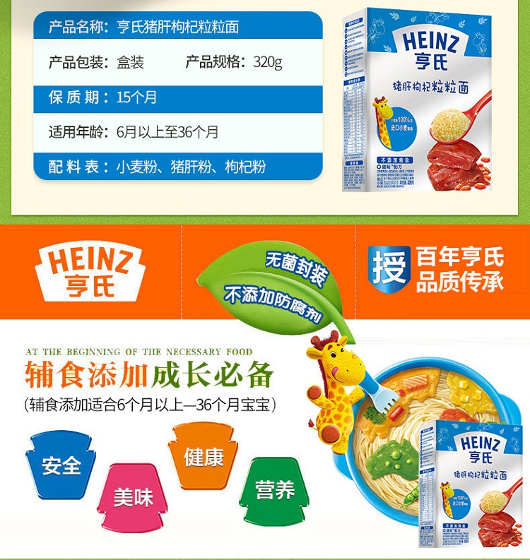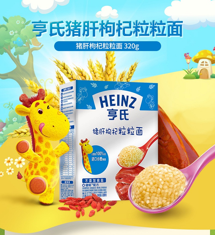 Heinz亨氏 金装黑米紫薯\猪肝枸杞\鳕鱼胡萝卜粒粒面320g三口味混发